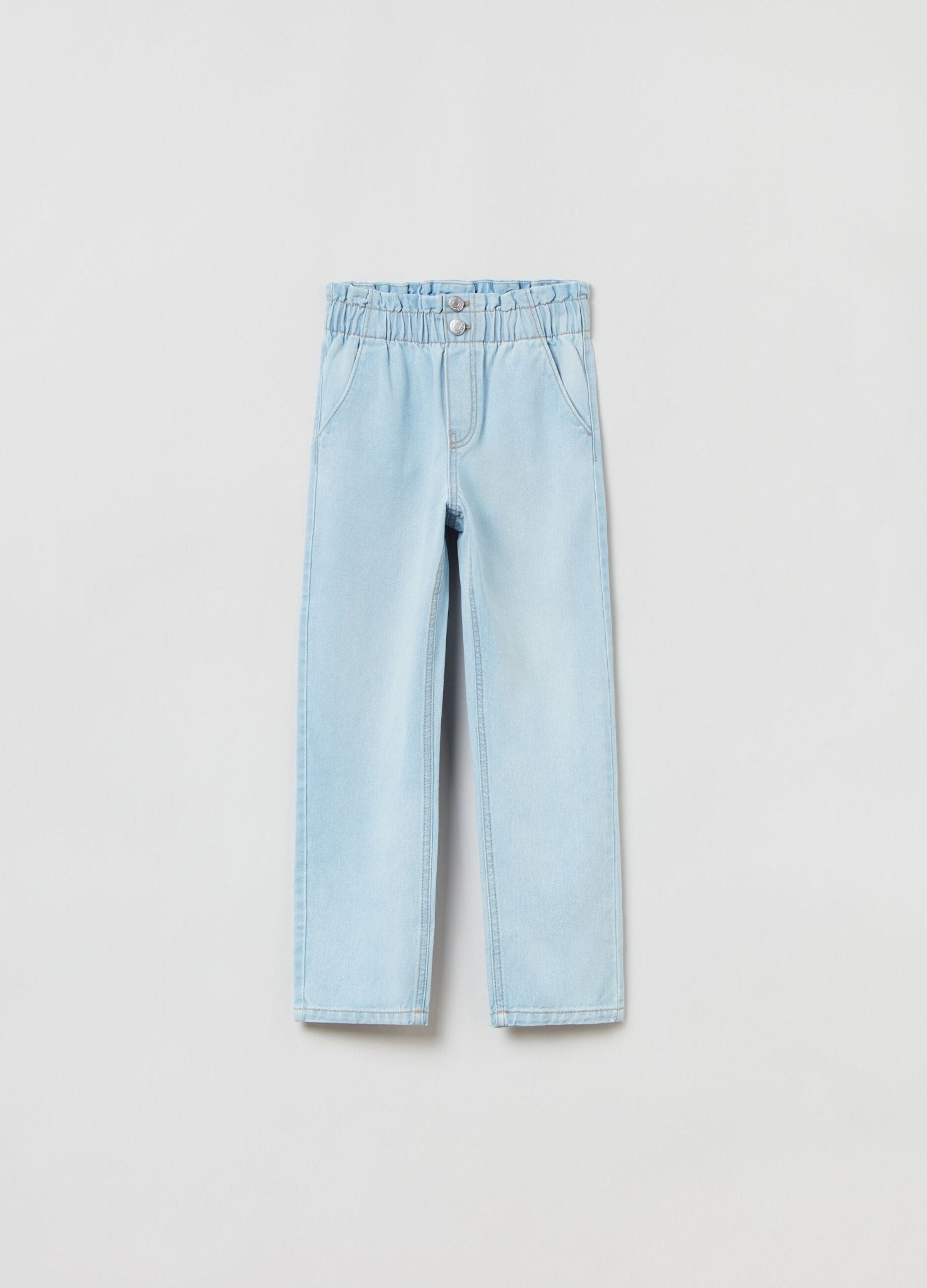 Paper bag jeans in 100% cotton with fading. Two slant pockets and two patch pockets on the back. Button fastening.