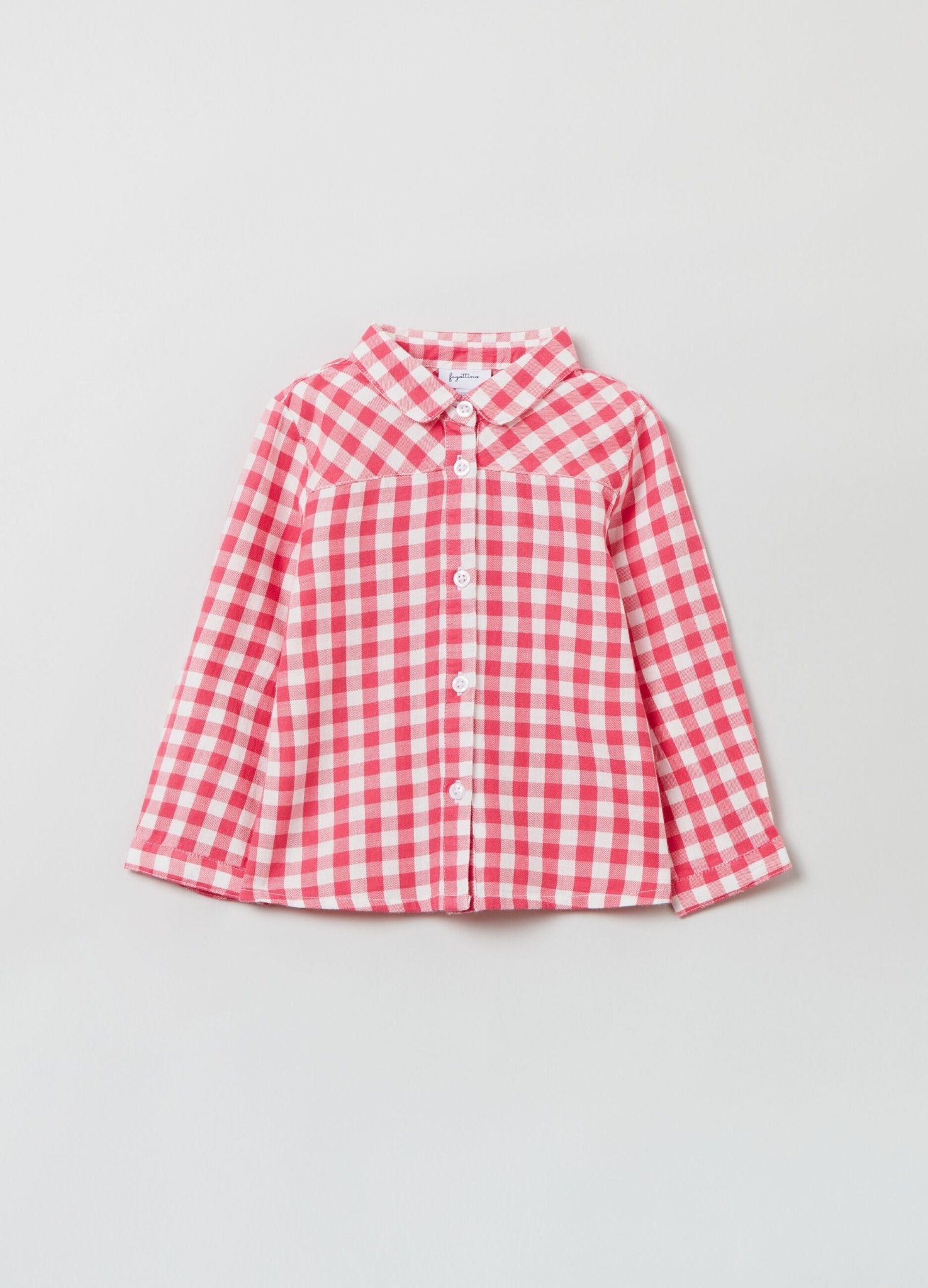 100% cotton shirt with check print. Bluff collar. Yoke on front and back. Button fastening.