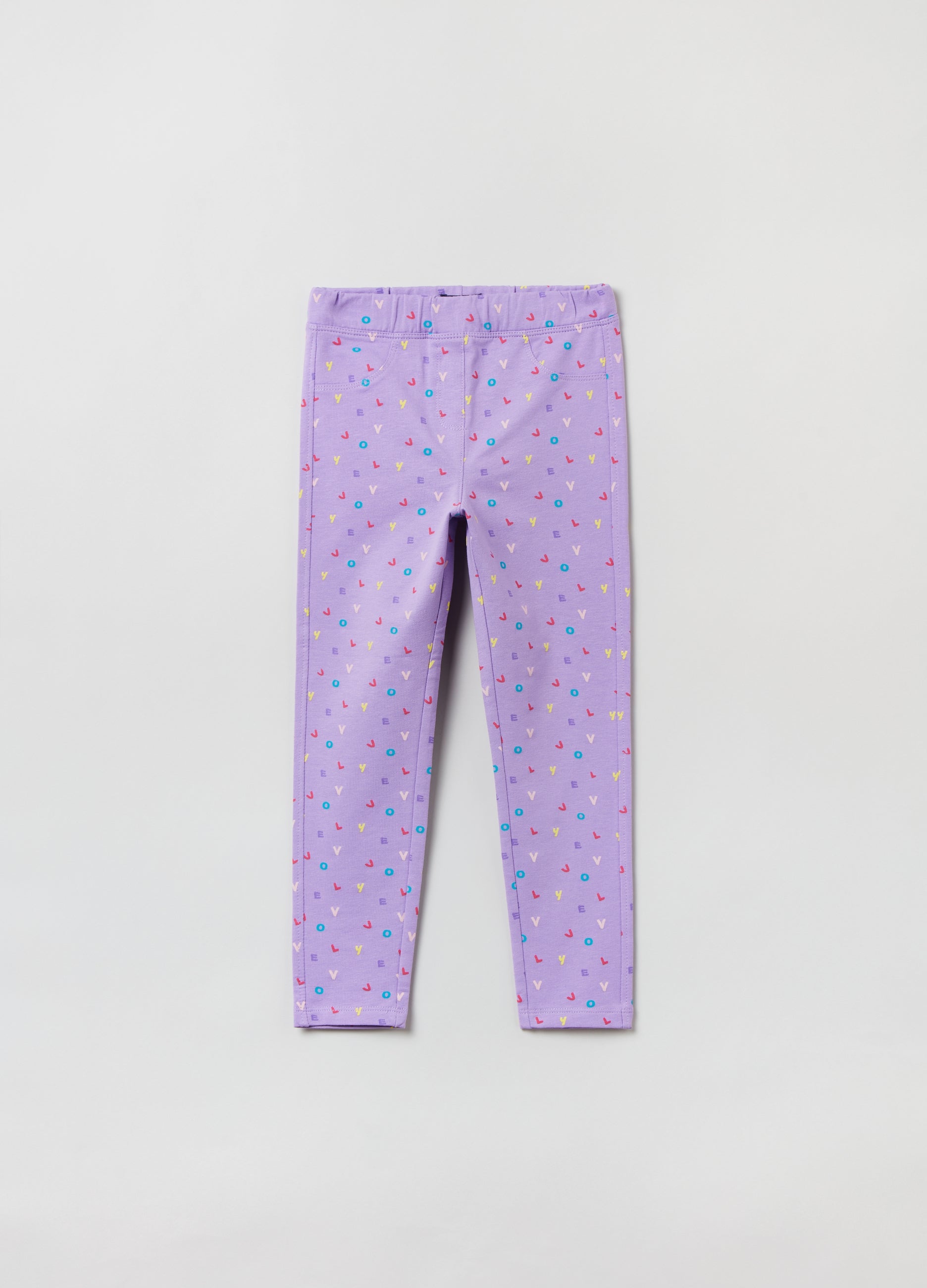 Stretch Cotton Treggings. Elasticated Waist. Two False Front Pockets. All-Over Multicoloured Lettering Print.