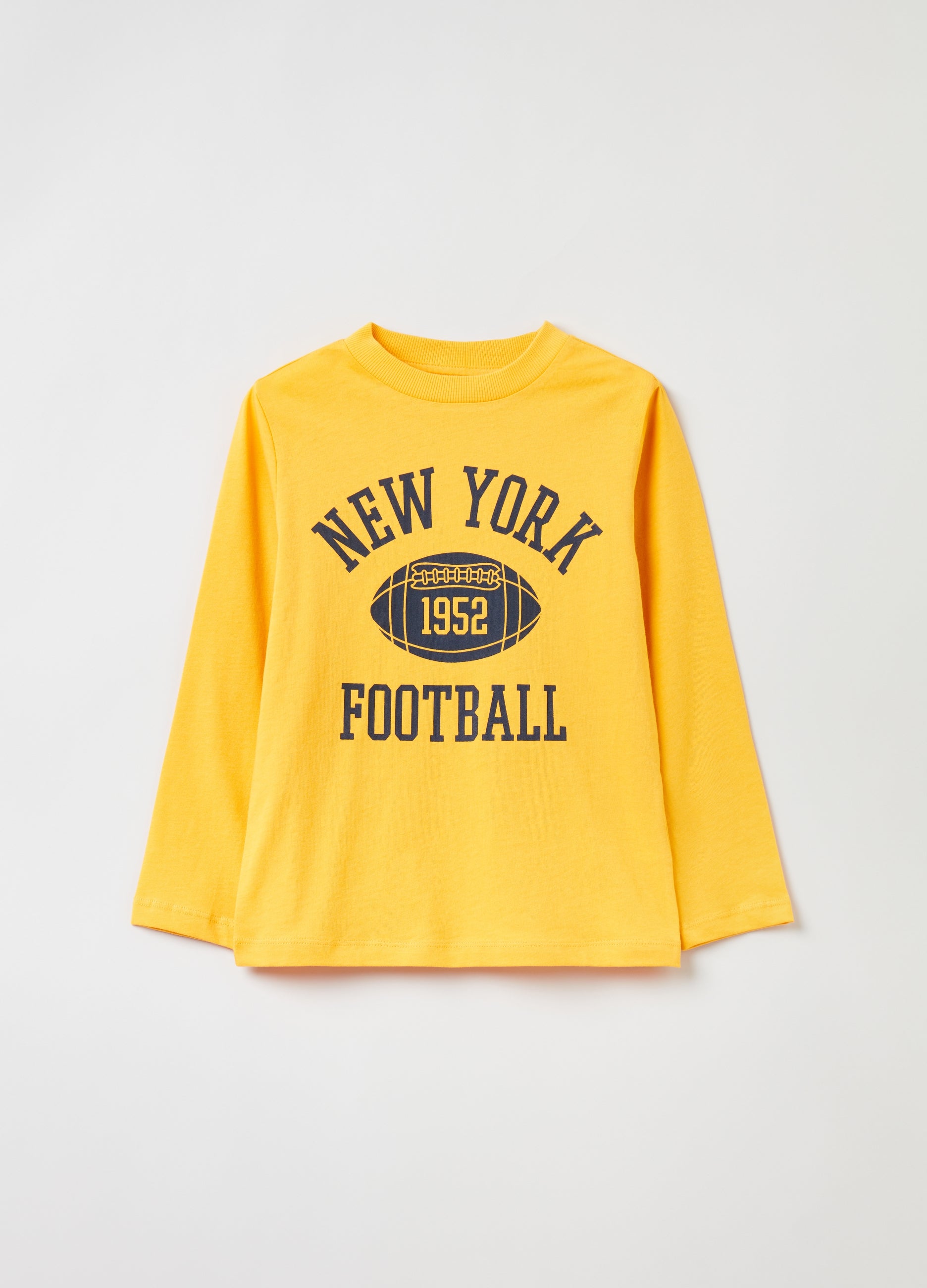 100% Cotton T-Shirt With Long Sleeves. Round Ribbed Neck. Football Ball And Lettering Print On The Front.