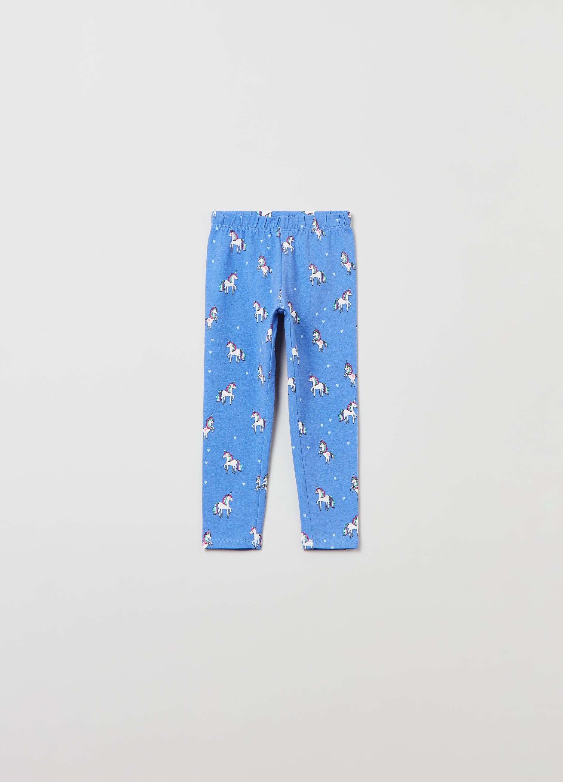 Stretch Cotton Leggings. Elasticated Waist. All-Over Unicorns And Hearts Print.