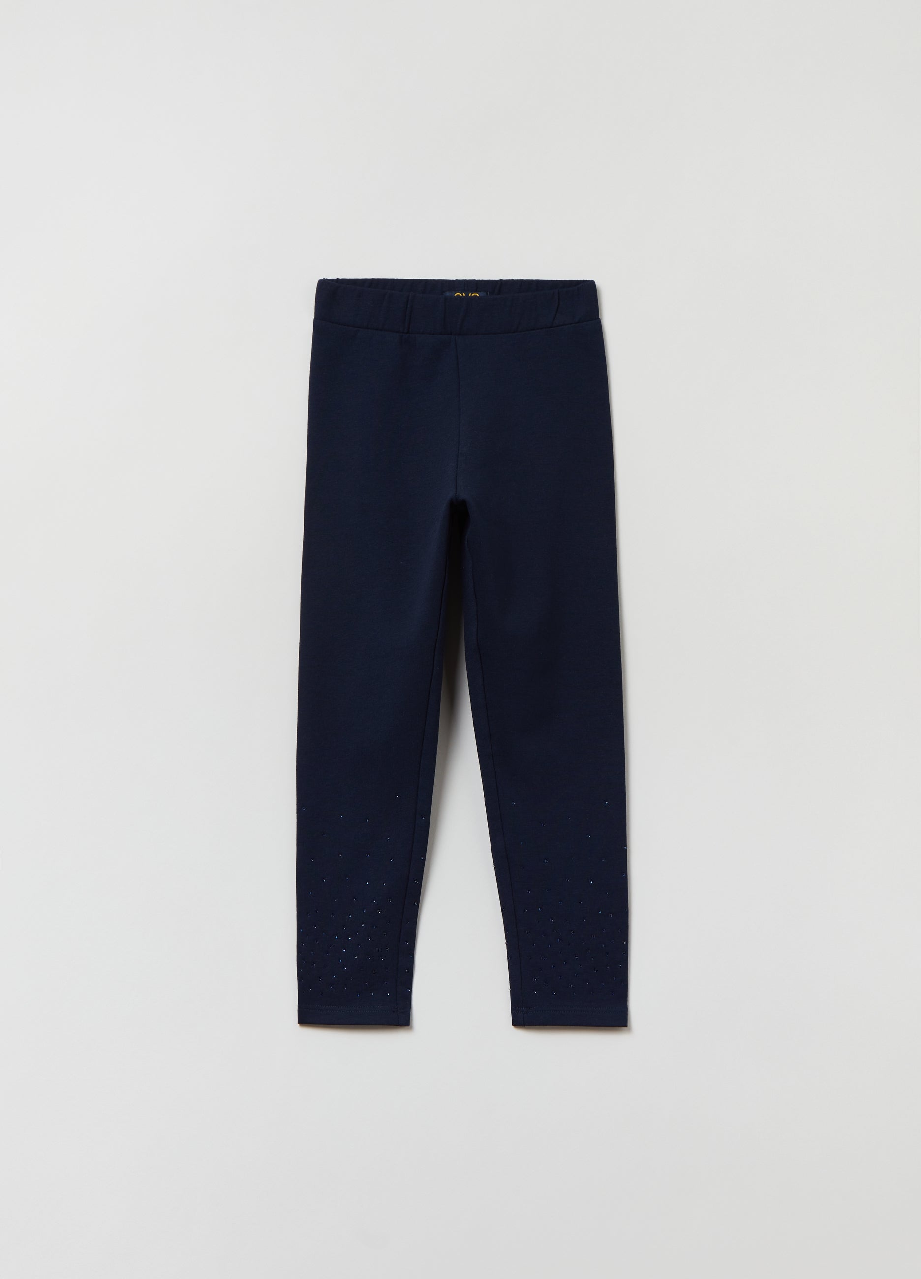 Stretch Cotton Leggings. Elasticated Waist. Beading At Bottom.