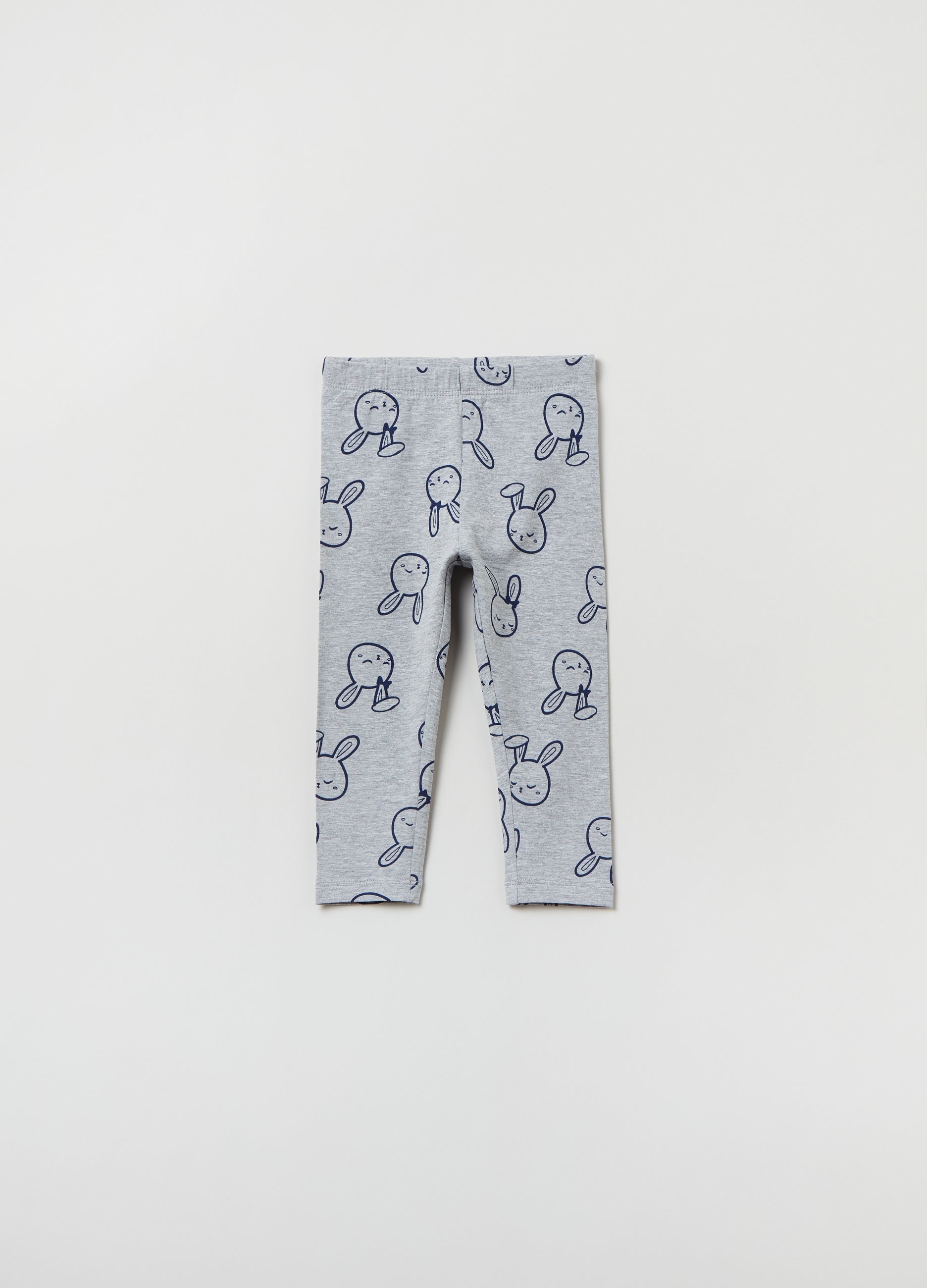 Stretch Viscose And Cotton Leggings. Elasticated Waist. All-Over Rabbit Print.