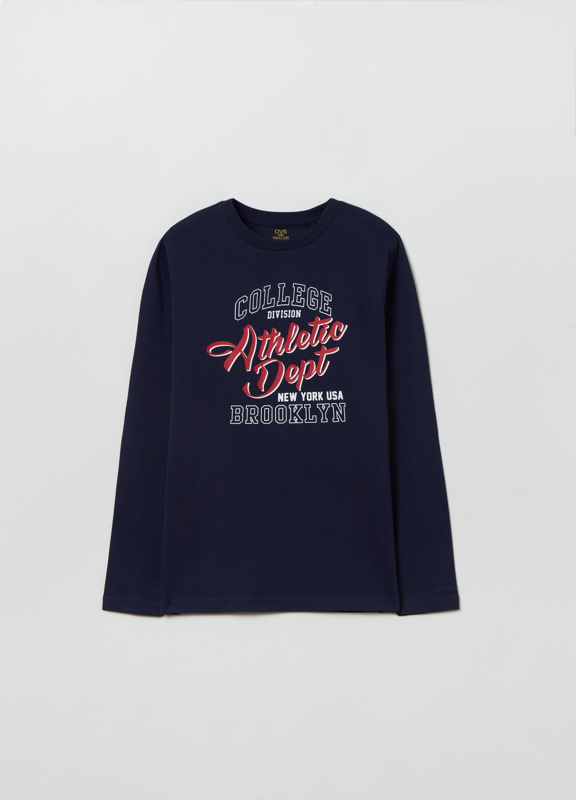 100% Cotton T-Shirt With Long Sleeves. Round Ribbed Neck. Printed Lettering On The Front.