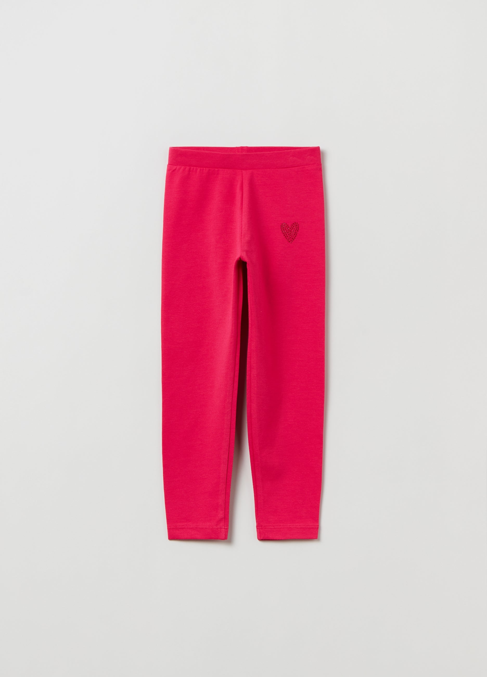 Solid Colour Stretch Cotton Leggings. Elasticated Waist. Diamantã© Heart Appliquã© On Chest.