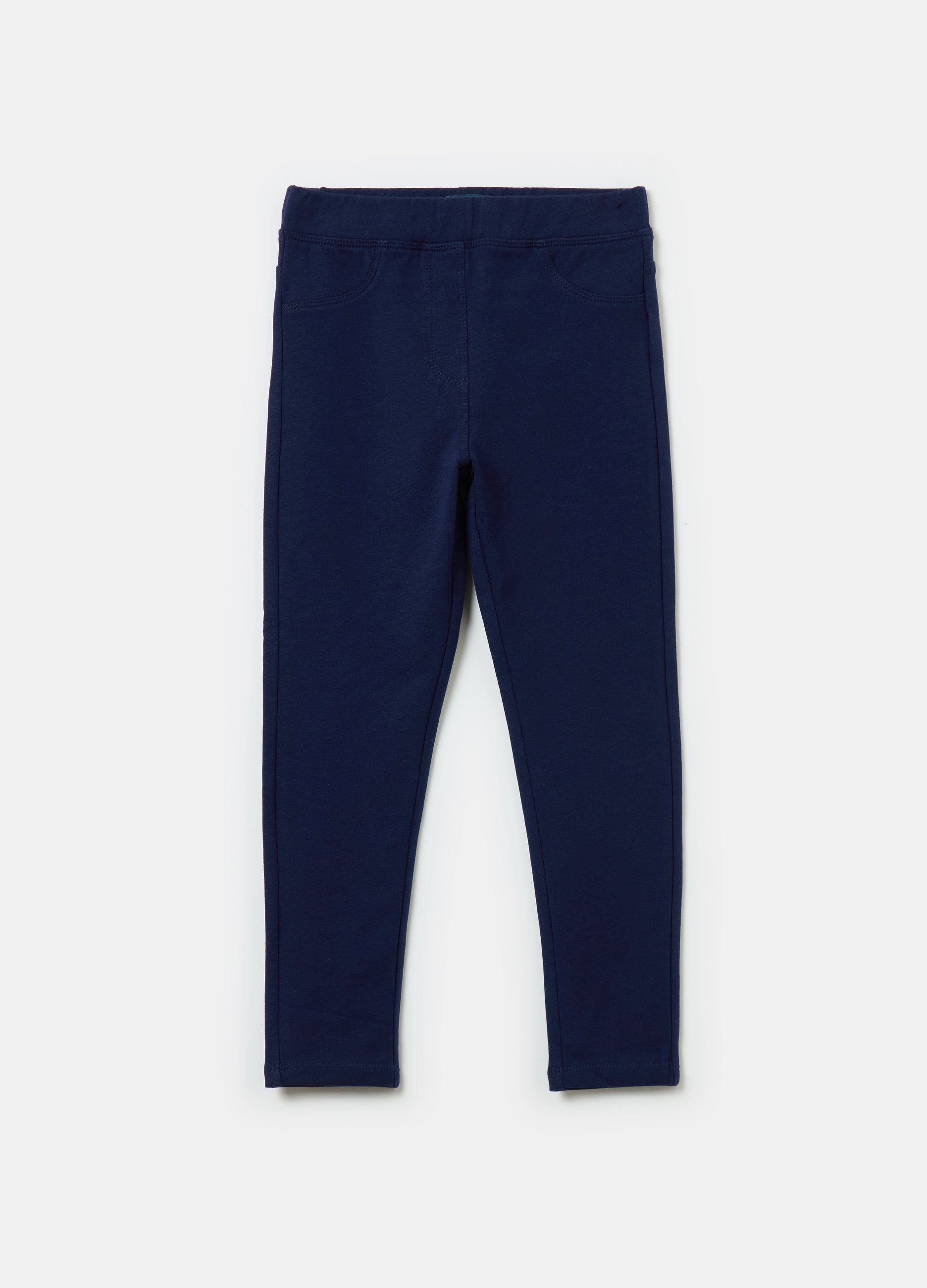 Solid colour treggings in stretch organic cotton. Elasticated waist. Faux pockets on front.