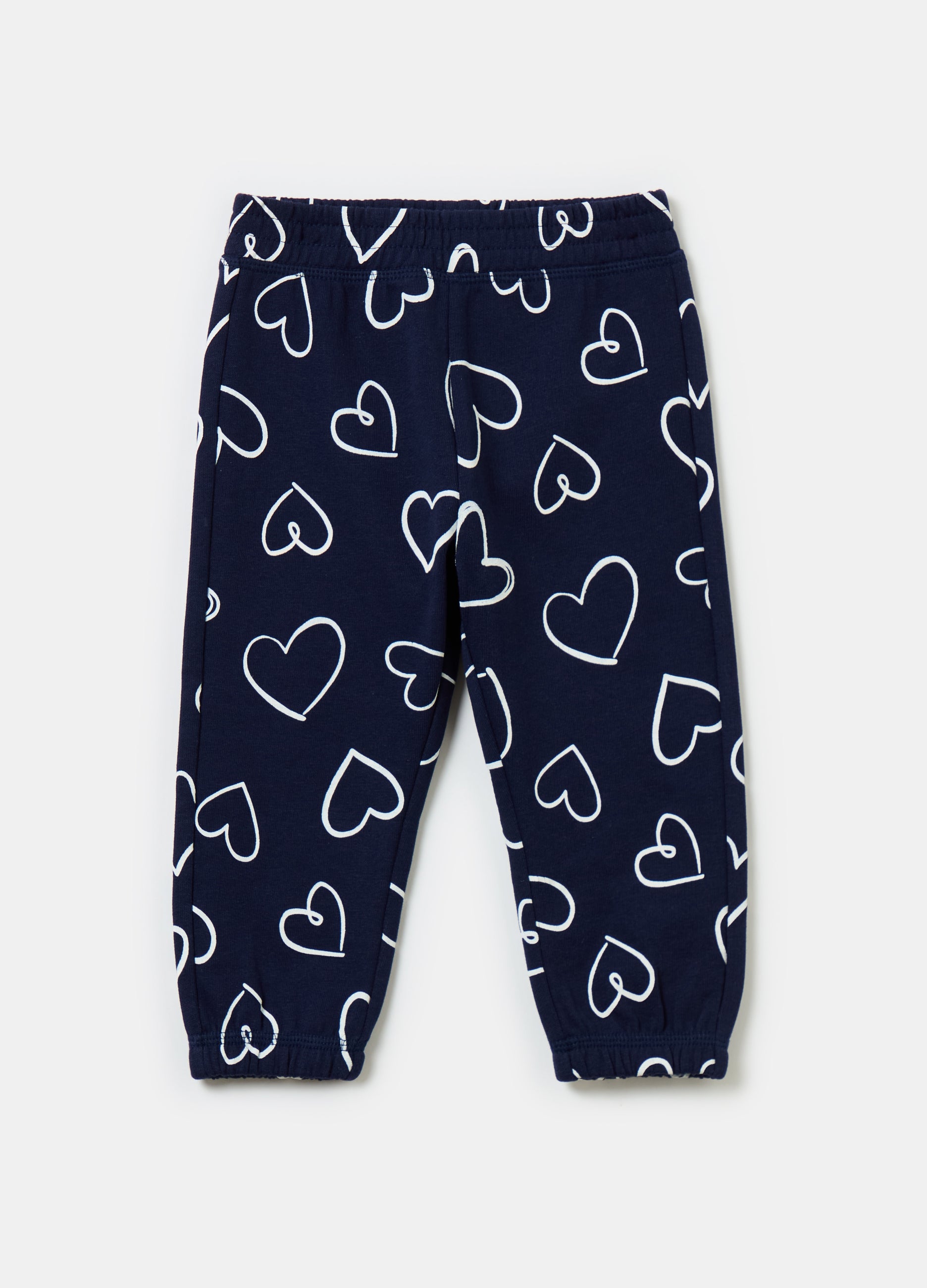 Joggers in 100% cotton fleece. Elasticated edges. All-over hearts print.