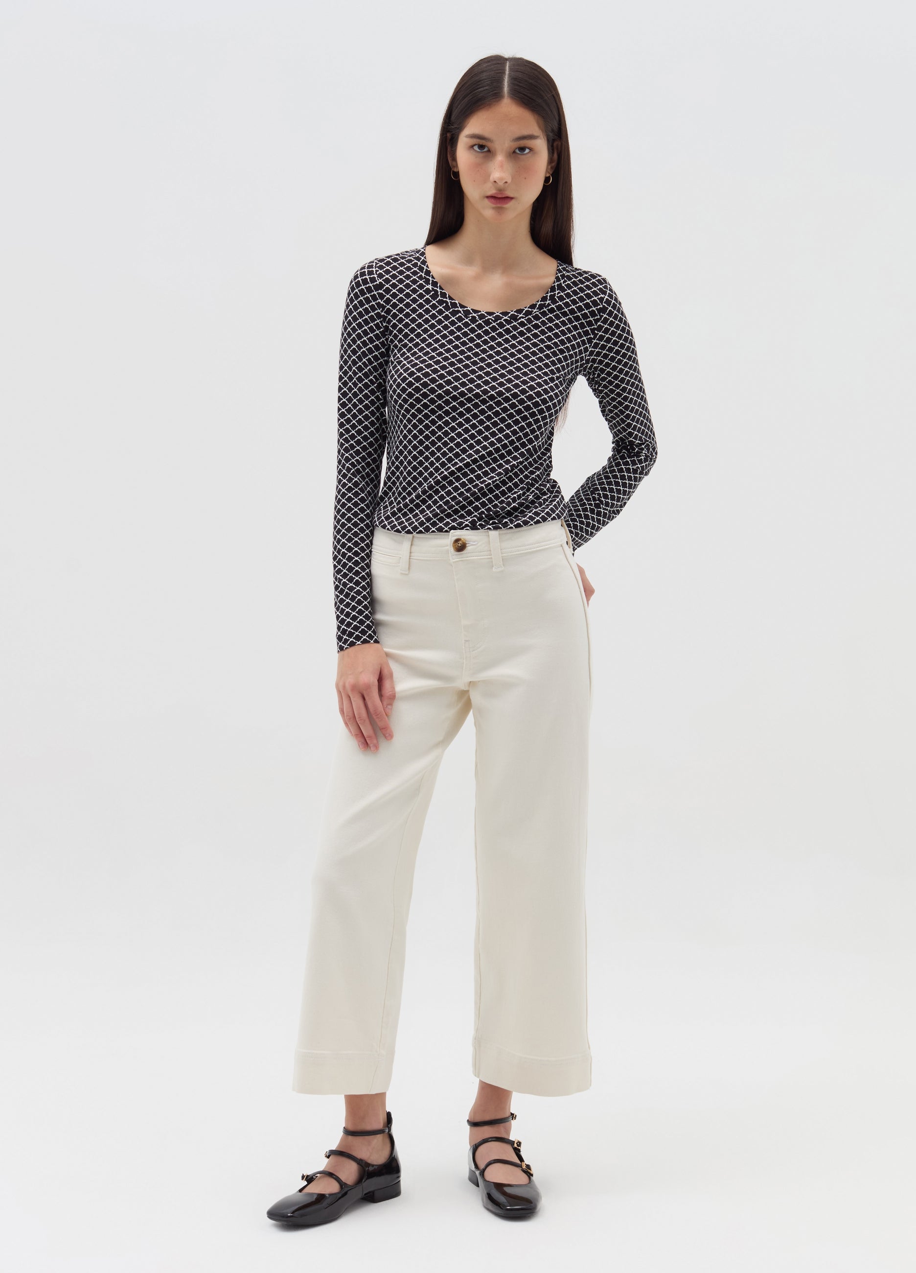 Long-Sleeved T-Shirt In Fscâ®-Certified Sustainable Stretch Viscose. Pattern With Optical Design. Round Neck.