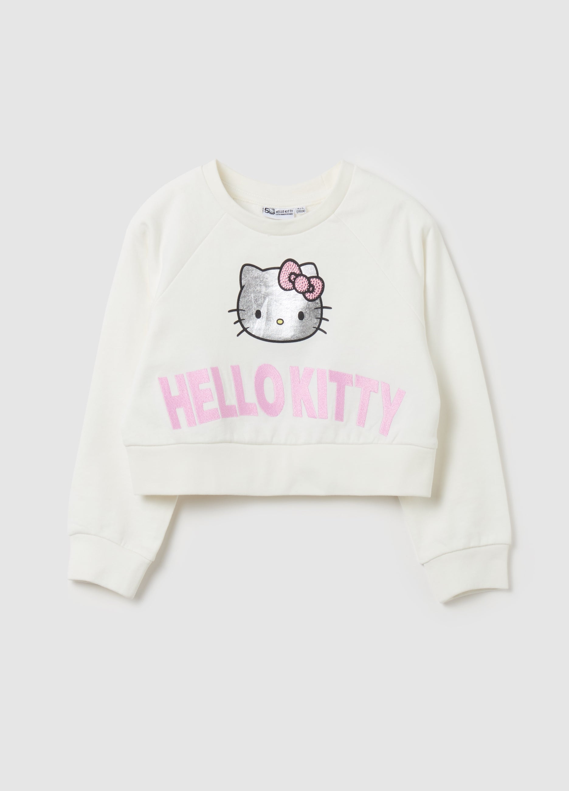 Cropped-fit sweatshirt in cotton blend. Round neck. Raglan sleeves. Hello Kitty foil print with diamantés. ''Hello Kitty'' lettering embroidery on the front.