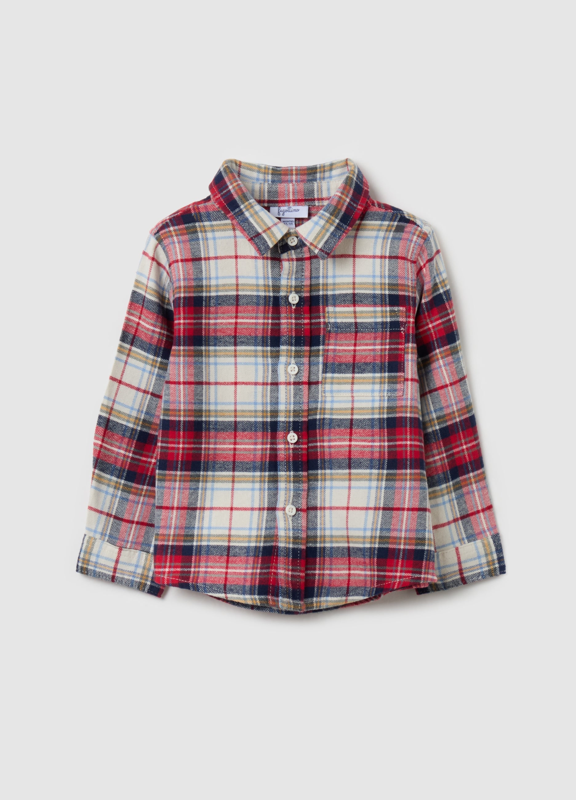 100% cotton flannel shirt with check pattern. Bluff collar. Yoke on the back. Pocket on the side. Button fastening.