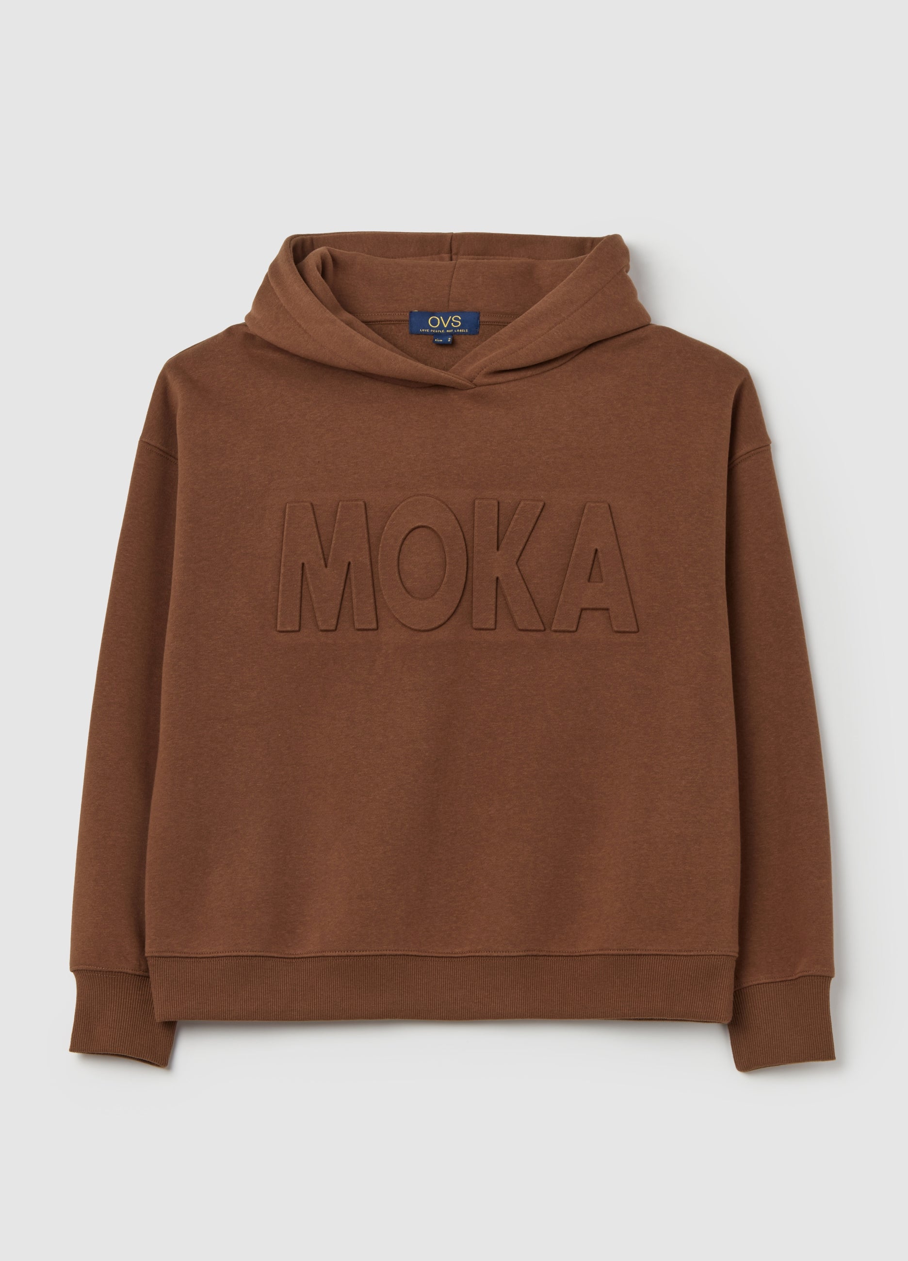 Essential Sweatshirt In Cotton Blend With Hood. Oversize Fit With Drop Arm Opening. Raised Lettering On The Front. Ribbed Cuffs And Hem.