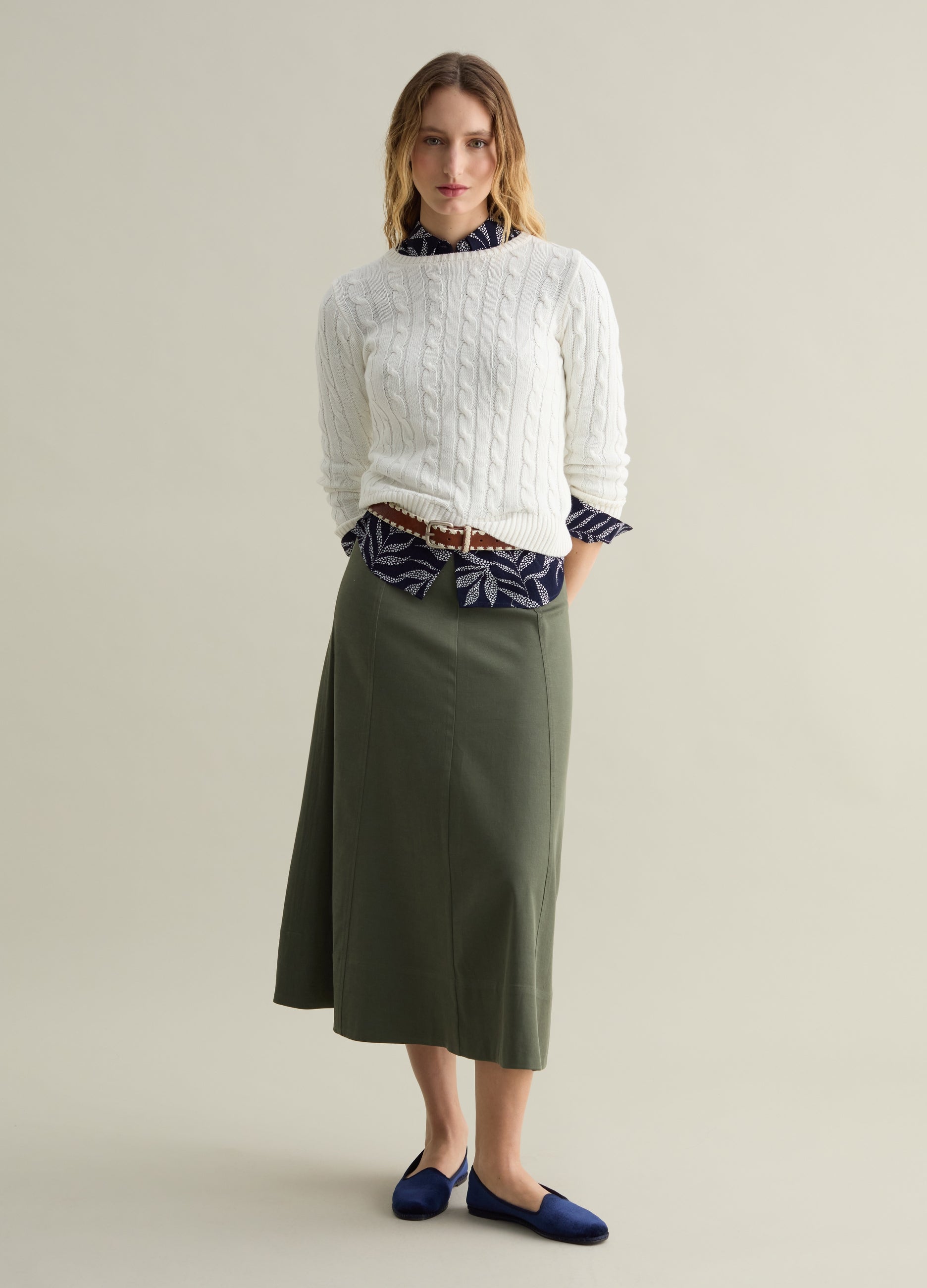 Piombo ribbed 100% cotton yarn pullover with cable-knit design. Round neck. Ribbed trims.