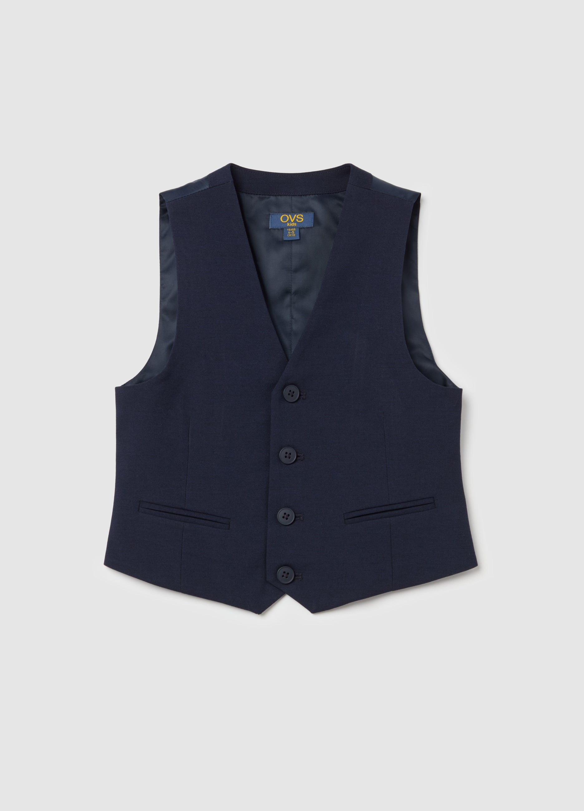 Solid Colour Gilet. Two Welt Pockets On The Front. Matching Button Fastening.
