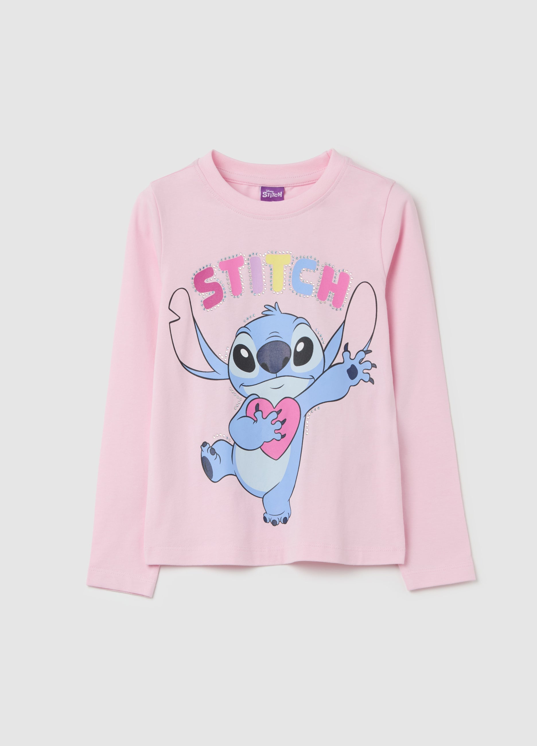Long-sleeved t-shirt in stretch cotton. Round neck. Disney stitch print with diamantã©s on the front.