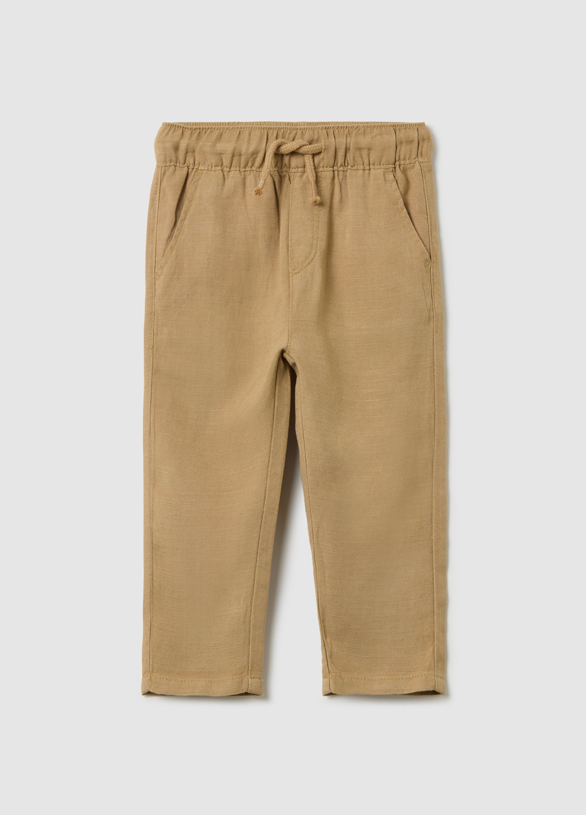 Linen And Viscose Jogger Trousers. Elasticated Waist With Cord Drawstring. Two Slant Pockets And Two Patch Pockets With Darts On The Back.