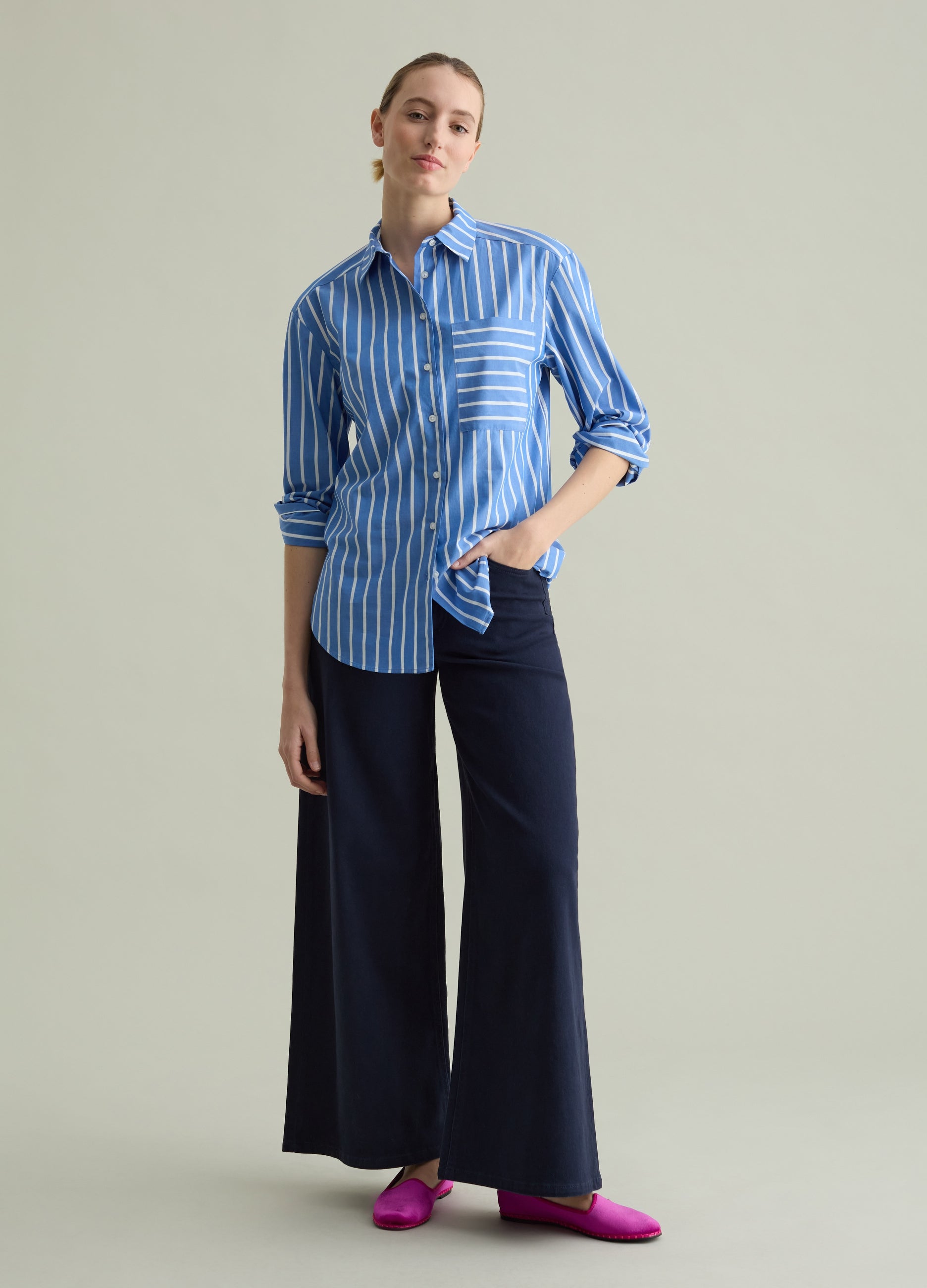 Piombo shirt in 100% cotton. Striped pattern. Bluff collar. Yoke on the back. Patch pocket on the chest. Buttons on the sleeve end. Button fastening.