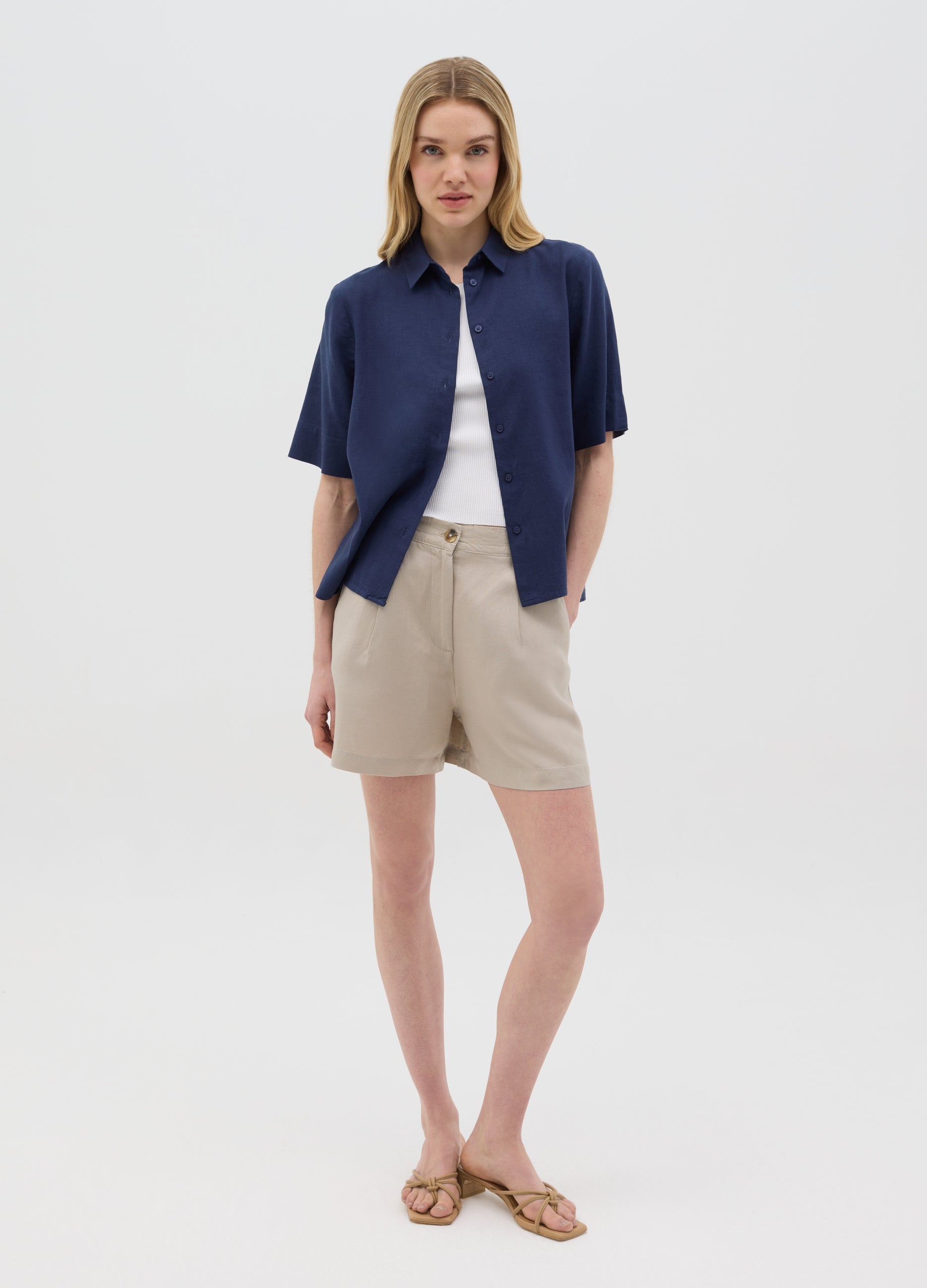 This Blue Shirt From The Ovs Line Is A Classic Garment Made In Linen And Viscose, And Perfect For Wearing On Any Occasion. It Features A Bluff Collar Design And Short Sleeves, Ensuring Regular Fit And Optimum Comfort. The Front Button Fastening Adds Practicality To Its Essential Style. Versatile And Suitable For Various Outfits, This Shirt Is A Must-Have In A Woman'S Wardrobe.