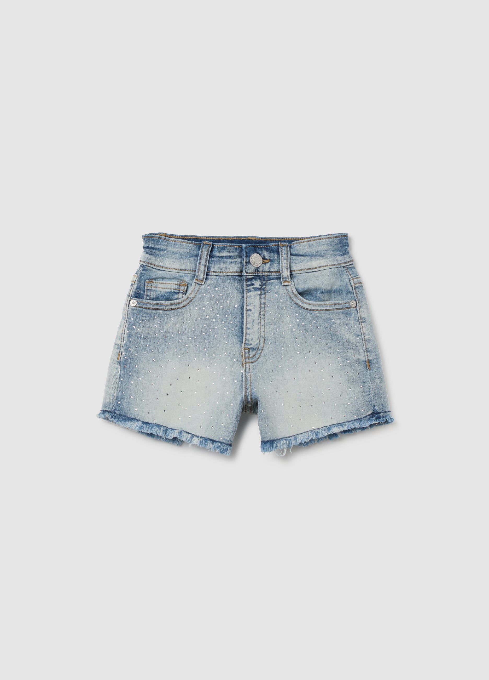 These Blue Denim Shorts From The Republic Of Denim Line, For Girls Aged 10 To 15, Are Enhanced With Rhinestone Applications, Adding A Spark To Your Outfit. The Five-Pocket Design Offers Practicality, While The Regular Waist With Adjustable Belt Ensures A Secure Fit. The Fringed Hem Provides A Modern And Trendy Look, Perfect For Summer.