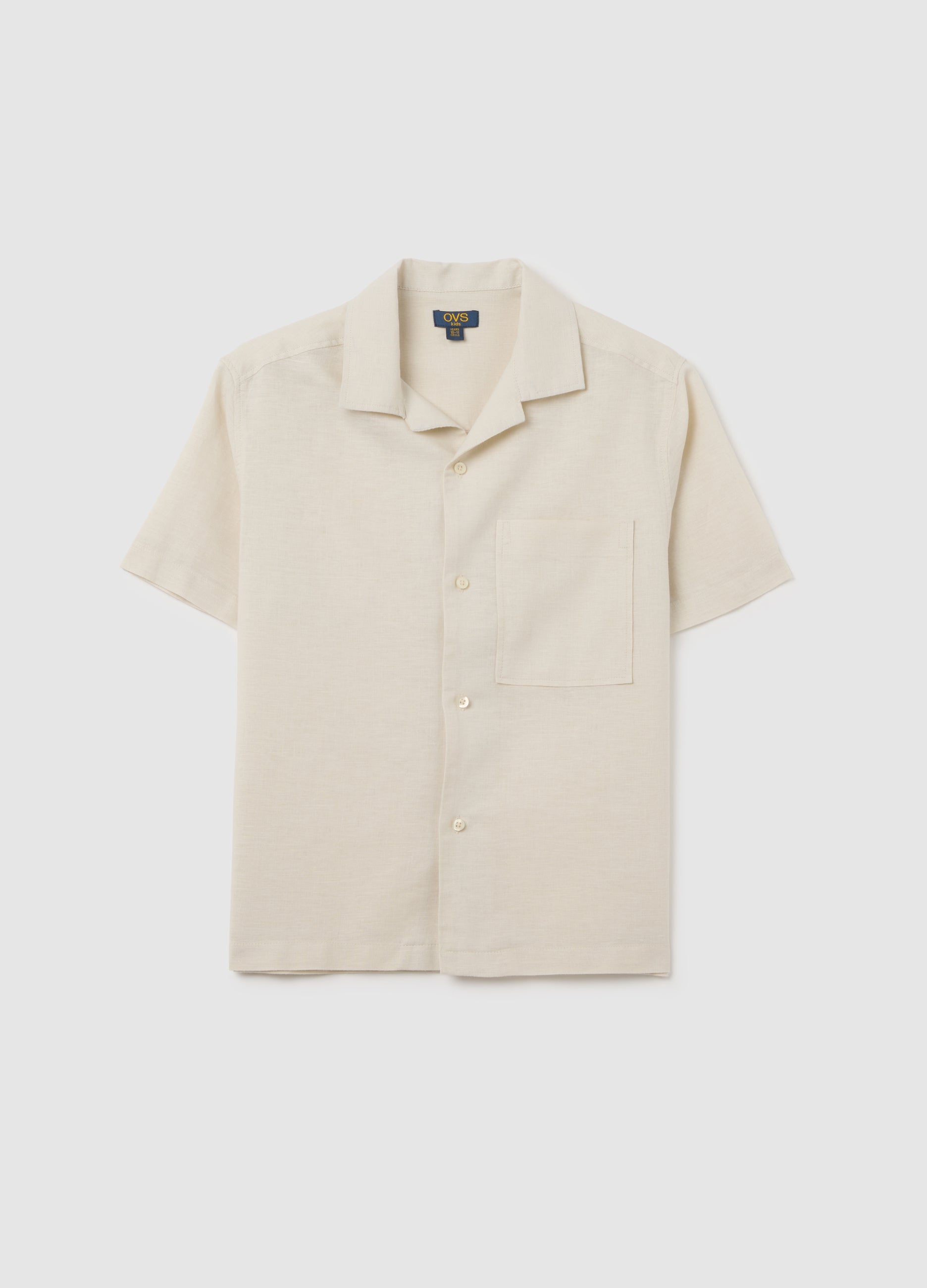 This Beige Short-Sleeved Shirt Is From The Ovs Kids Line, For Boys Aged 10 To 15 Years. Made From A Linen And Cotton Blend, It Features A Minimalist Design With A Classic Collar, Perfect For A Casual And Versatile Look. Its Simplicity Makes It Easy To Pair With Any Outfit, Whether For Informal Occasions Or More Elegant Ones.