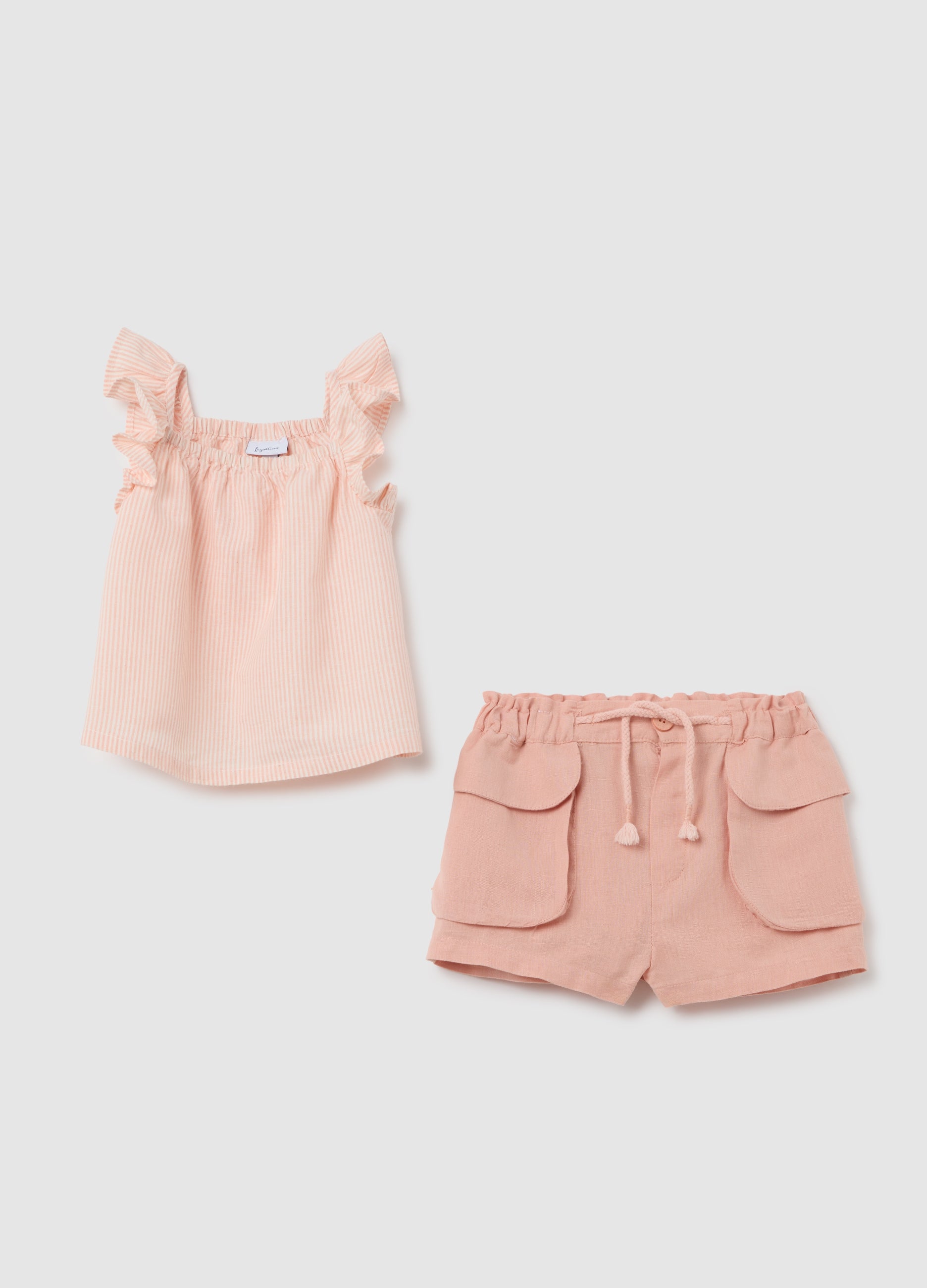 Set Consisting Of Fagottino Top And Shorts. The Top Features Charming Ruffles On The Shoulders And The Shorts Have A Button Closure And Adjustable Drawstring. Made Of Cotton And Linen For A Soft And Fresh Feel.