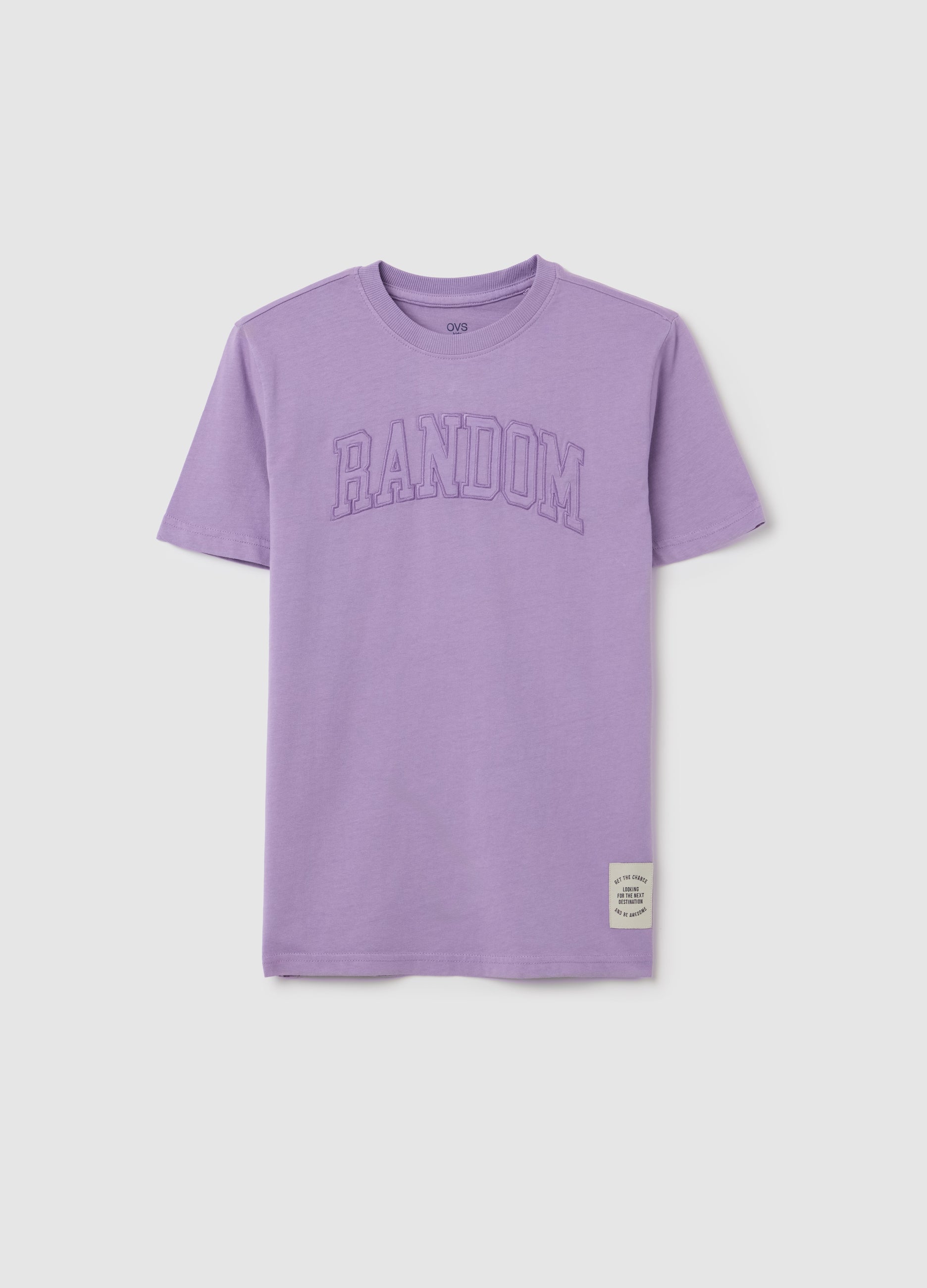 Purple Pure Cotton Ovs Kids T-Shirt. Round Neckline And Oversized Fit. 'Random' Printed On The Chest For A Casual And Trendy Look.
