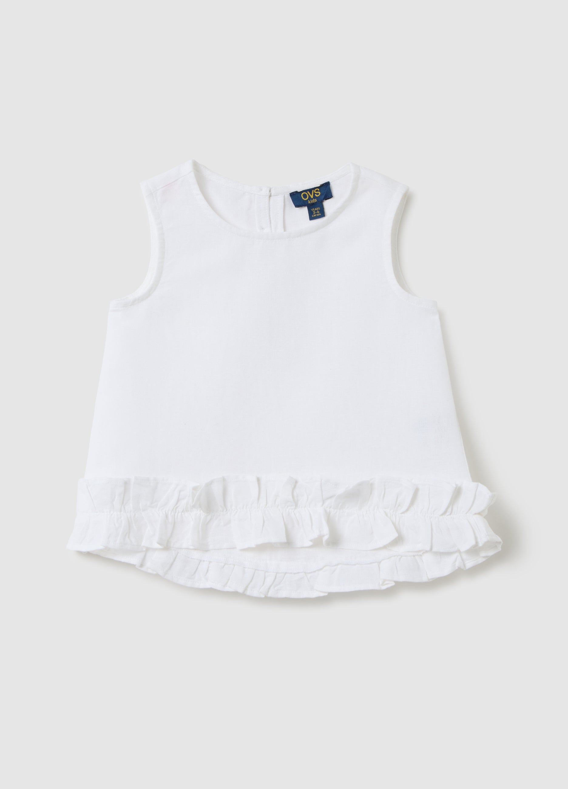 Ovs Kids Sleeveless Blouse For Girls. Made From A Cotton And Linen Blend For Lightweight Comfort. Features A Delicate Design With Ruffles At The Lower Part. Back Button Closure For Easy Use.