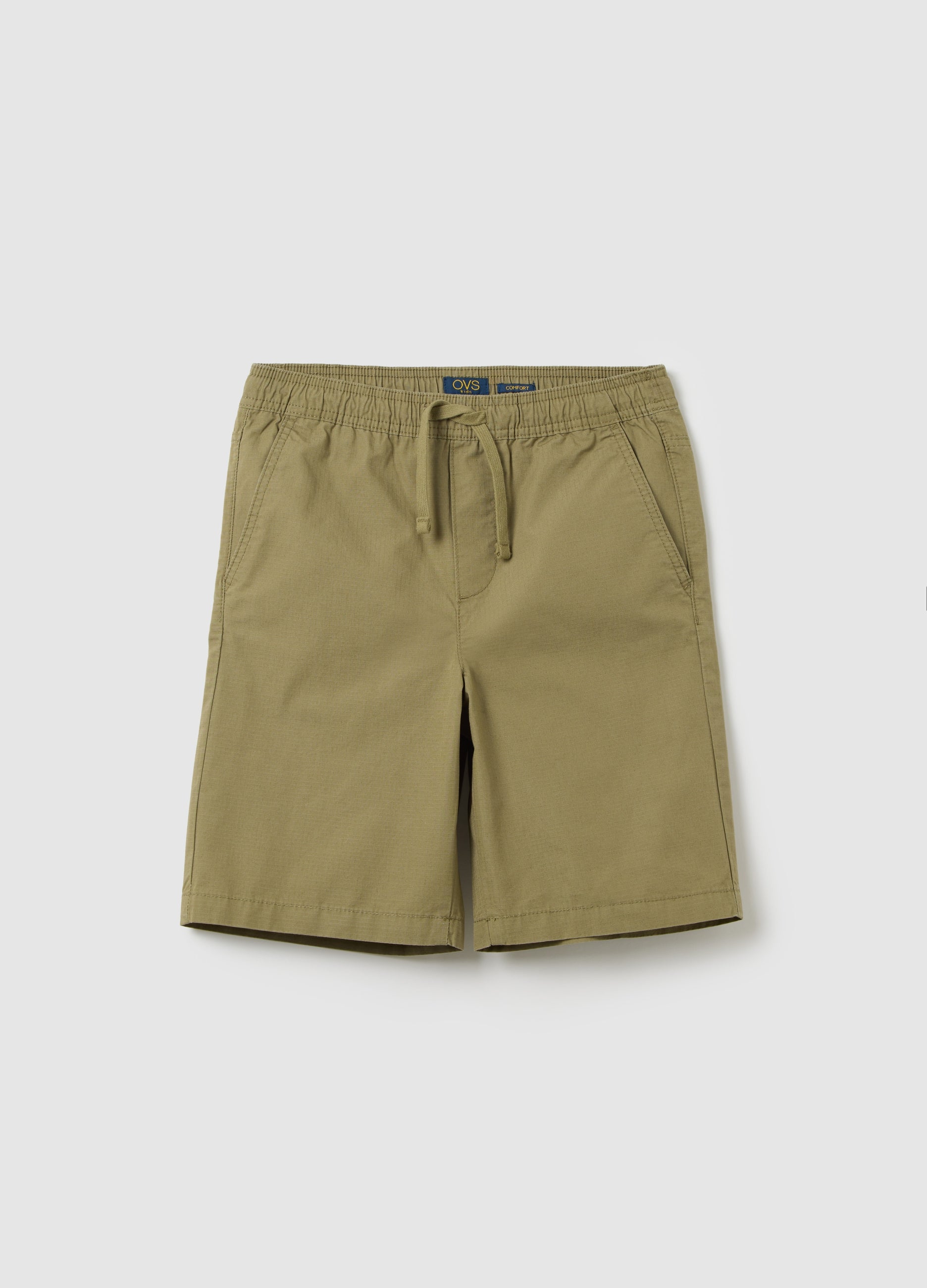 Shorts In 100% Cotton Canvas With Ripstop Weave. Elasticated Waist With Drawstring And Pockets On Both Sides.