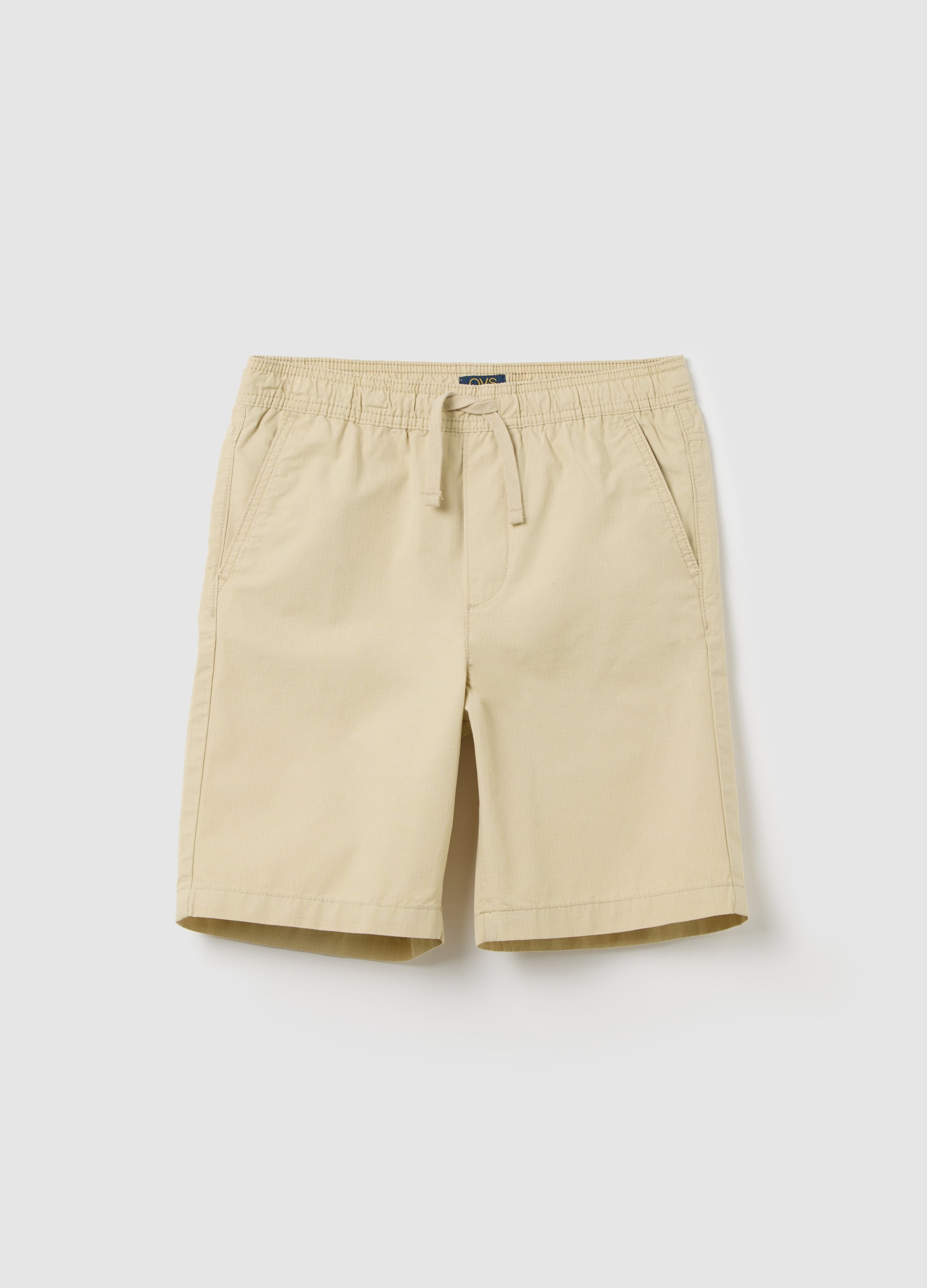 Shorts In 100% Cotton Canvas With Ripstop Weave. Elasticated Waist With Drawstring And Pockets On Both Sides.