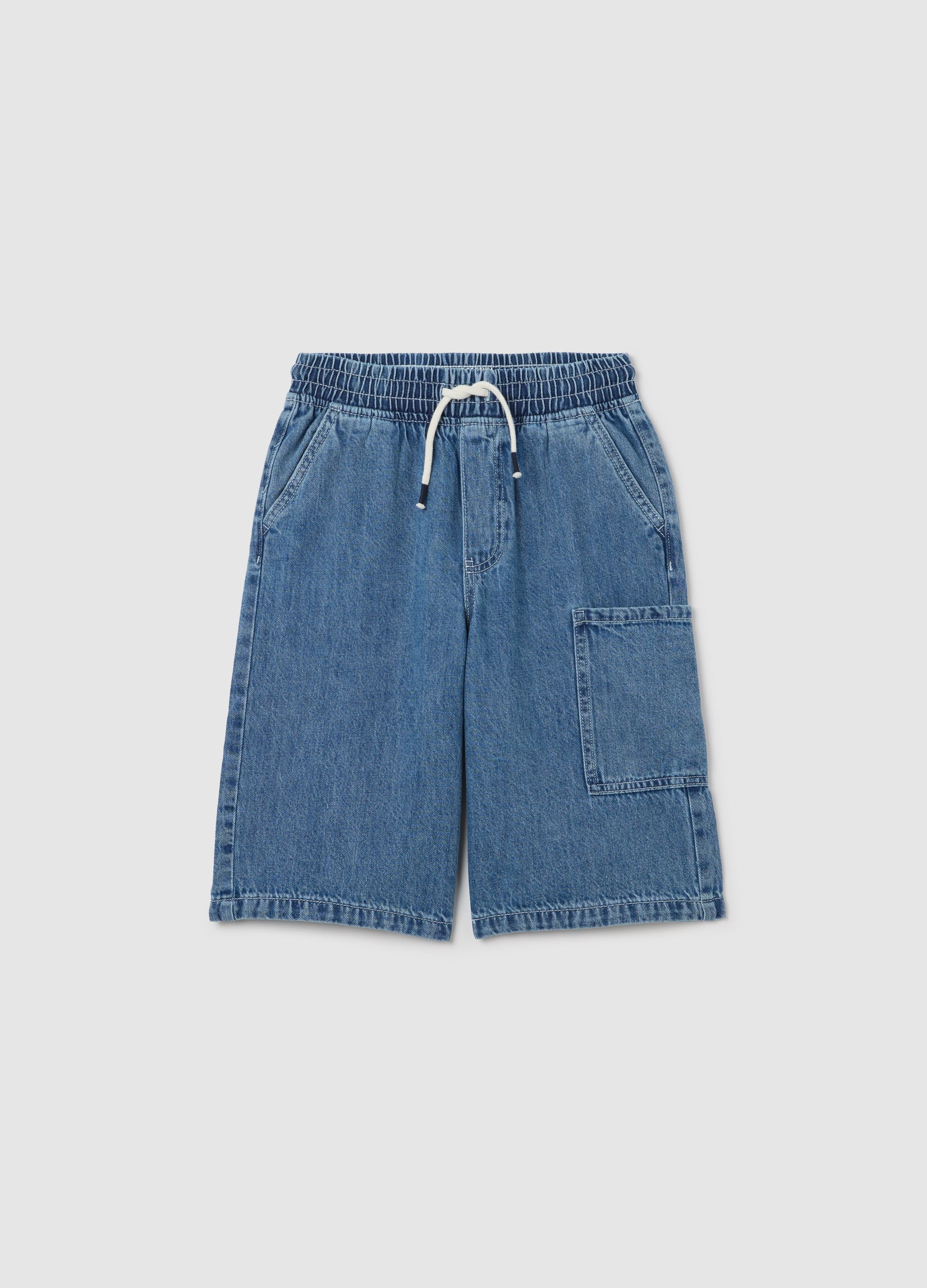 Ovs Kids Denim Shorts, Ideal For Boys. Baggy Design With Elastic Waist And Side Pocket. Perfect For Spring/Summer Season For A Casual And Comfortable Look.