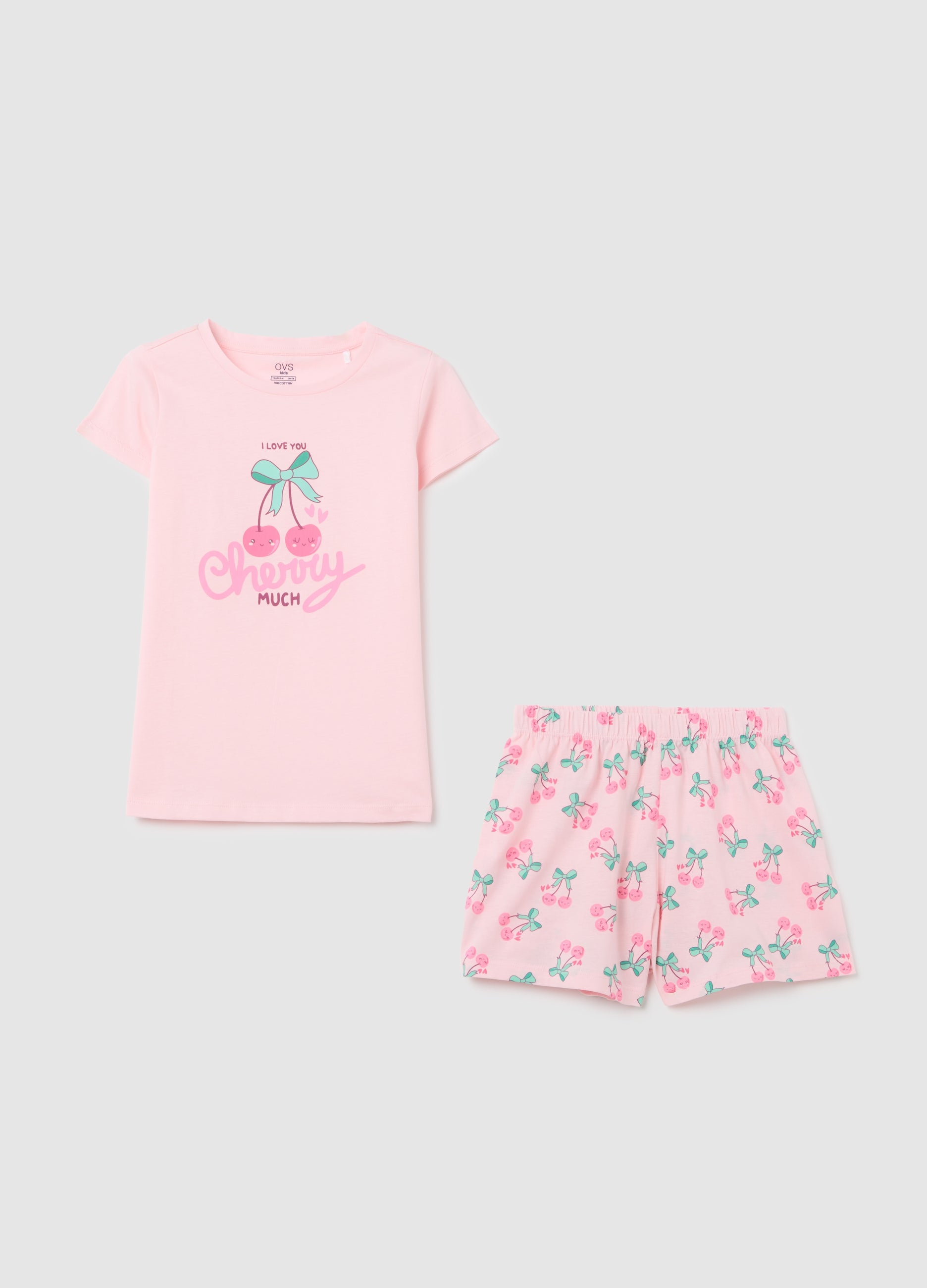 Short Pyjamas For Girls In Pure Organic Cotton. Pink T-Shirt With A Round Neckline And Fun Print. Pink Shorts With A Lively Pattern. Perfect For A Good Night'S Sleep.