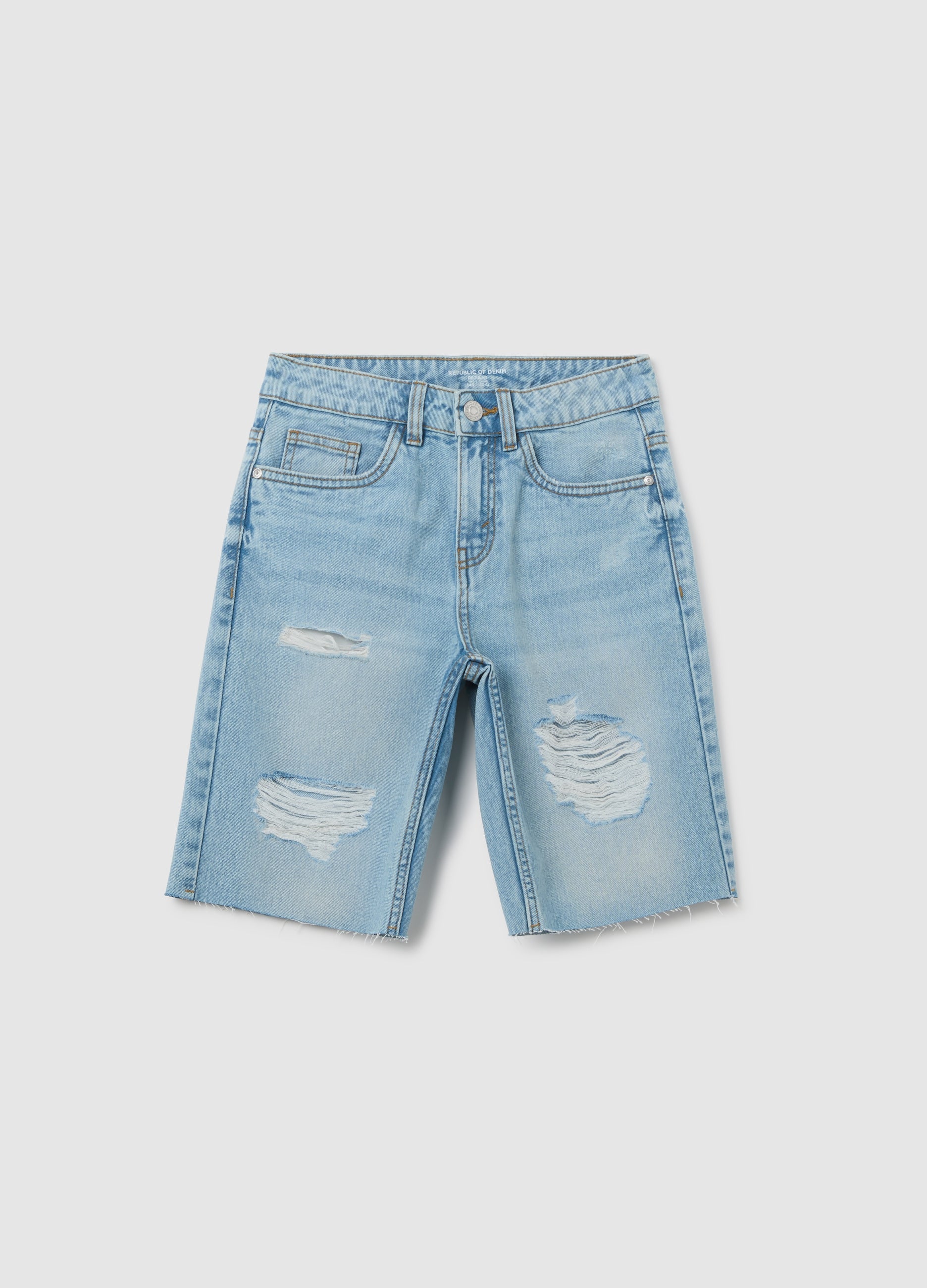 The Blue Boys' Bermuda Shorts From The Ovs Kids Line Are Made Of Pure Cotton With Distressed Details, Offering Comfort And Practicality Thanks To The Back Patch Pockets. The Button And Zip Closure Ensures A Comfortable Fit.