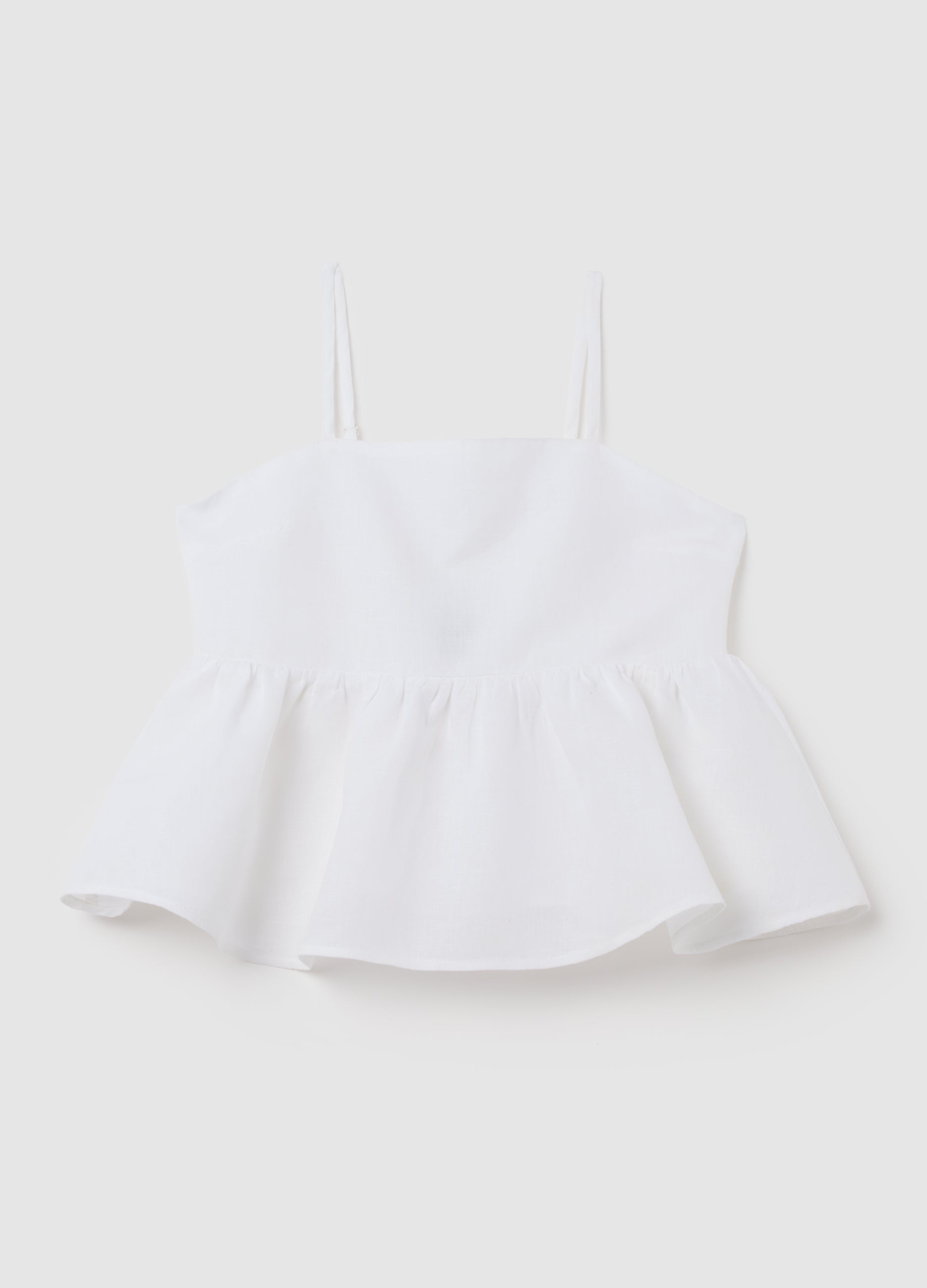 This White Top From The Ovs Kids Line Is Designed For Girls Aged 10 To 15, Made Of Cotton And Linen. The Ruffles Add Movement, While The Bow At The Back Provides A Touch Of Originality. The Thin Straps Are Adjustable, Making The Garment Comfortable And Practical For Summer Days.
