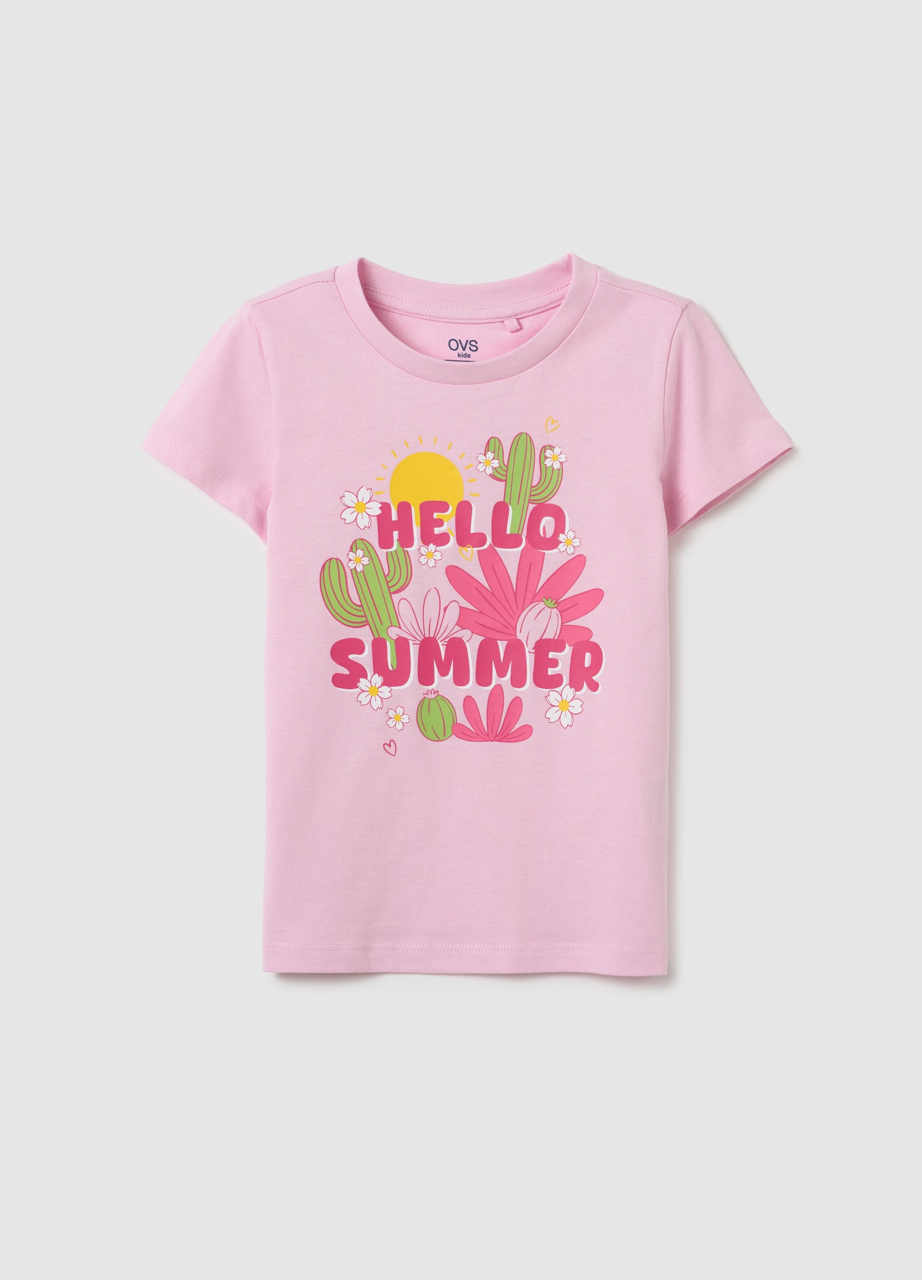 The Pink Girls' T-Shirt From The Ovs Kids Line Is Made Of Pure Cotton And Features A Lively 'Hello Summer' Graphic. With Short Sleeves And A Round Neck, It'S The Perfect Garment For Hot Summer Days.