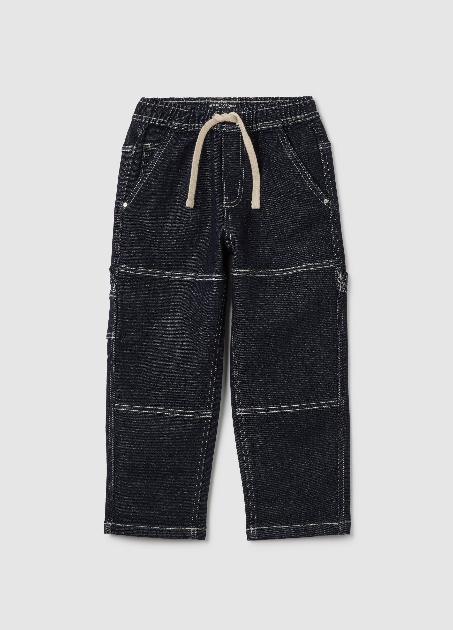 The Children'S Blue Denim Cargo Trousers From The Ovs Kids Line Are Perfect For Little Ones Aged Three To Ten Years. Featuring A Relaxed Cut, They Offer An Elasticated Waistband For Adjustable Fit. The Two Front Slant Pockets And Back Patch Pockets Ensure Functionality And Practicality, Making Them Perfect For Any Occasion.