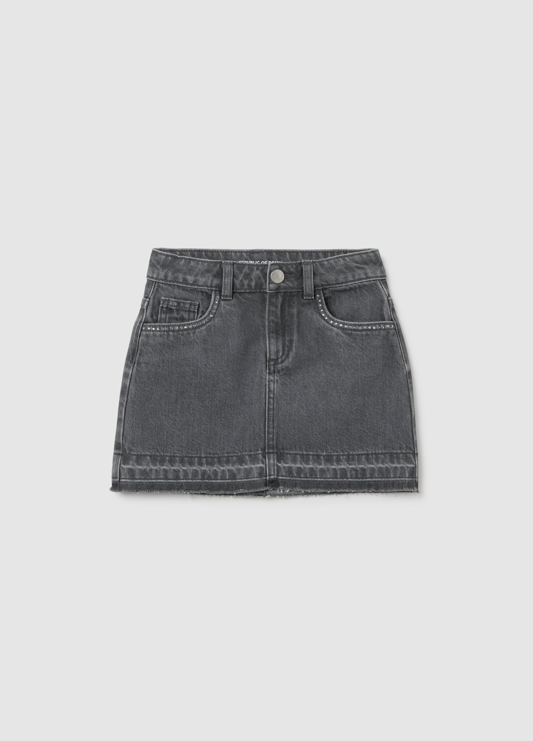 This Grey Pure Cotton Skirt From The Ovs Kids Line Is Designed For Girls Aged Between 3 And 10 Years. Enhanced With Rhinestone Details, It Adds A Touch Of Sparkle To The Everyday Look. It Features Front And Back Pockets, Making It Perfect For A Casual And Practical Outfit. The Fit Is Regular And The Waist Is Adjustable, Ensuring Maximum Comfort During Daily Activities.