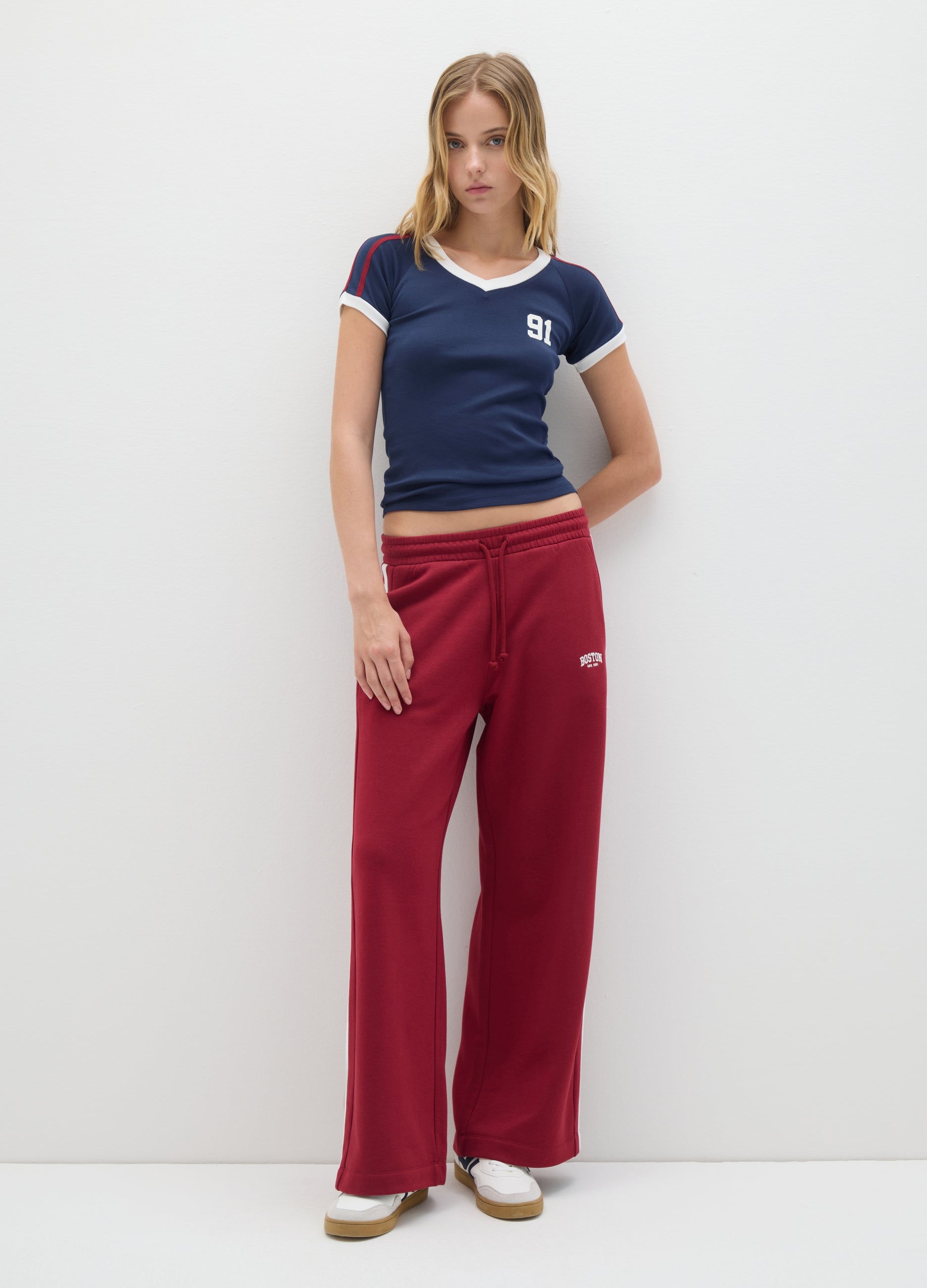 The White T-Shirt With Red Details And B.Angel Line Print Is A Versatile And Trendy Garment, Perfect For Any Occasion. Made Of Pure Cotton, It Offers A Fitted Silhouette And Optimal Comfort Thanks To The Soft And Stretchy Fabric. The Multicolour Design And V-Neck Make It An Essential In Your Wardrobe, Ideal For Autumn And Winter Seasons. With Contrasting Colour Details, This T-Shirt Is Perfect For A Casual And Sporty Look.