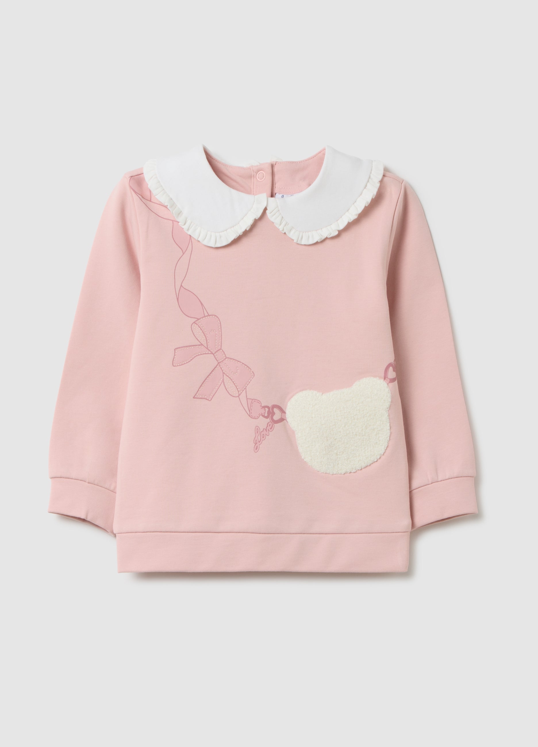 This Pink Stretch Cotton Girl'S Top With A White Ruffled Collar Features A Charming Print. Ideal For Cool Autumn And Winter Days, It Offers Timeless Comfort And Style. The Simple Design Makes It Perfect For Any Occasion, Providing Warmth And Sweetness Thanks To The Soft Fabric That Gently Wraps Around. A Versatile Piece From The Fagottino Line For Girls Aged 9 To 36 Months.