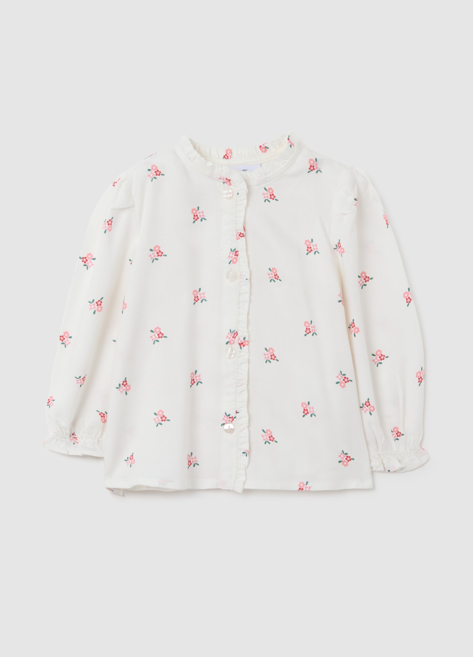 The White Blouse With Ruffles From The Fagottino Line Is Designed For Baby Girls Aged 9 To 36 Months. Made From Pure Viscose, It Offers A Soft Touch On The Skin. The Floral Design Adds A Feminine Touch, Making It Ideal For Cooler Seasons. The Button Closure Ensures Practicality, Making This Garment Perfect For Everyday Comfort.
