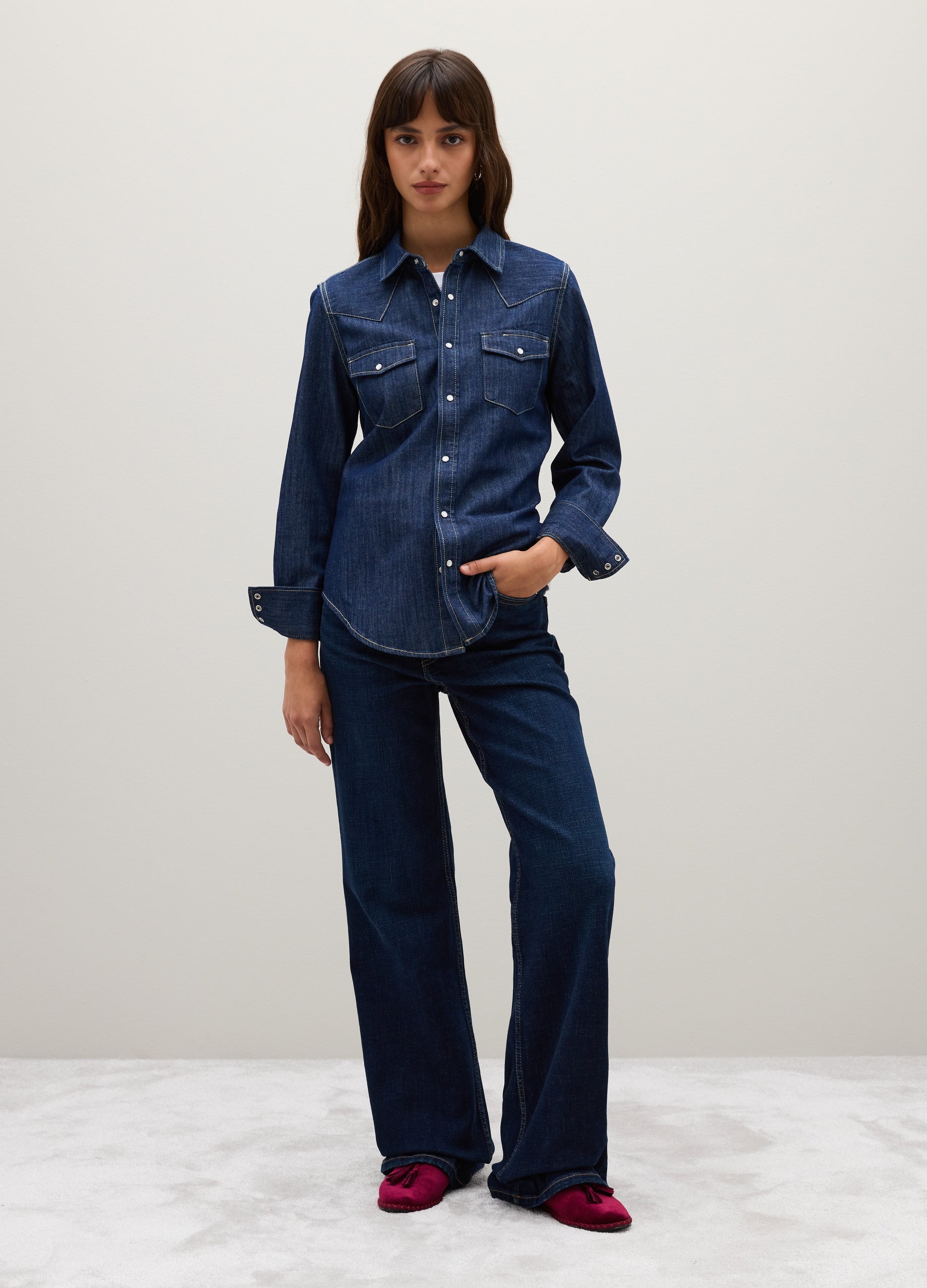 The Blue Denim Shirt By Piombo Is Crafted From Pure Cotton. It Features A Classic Collar And Two Flap Pockets On The Chest, Adding Functionality To Its Design. The Button Fastening Ensures Practicality, Making It Perfect For A Casual Yet Sophisticated Look. Pair It With Denim Trousers For A Harmonious And Stylish Outfit.