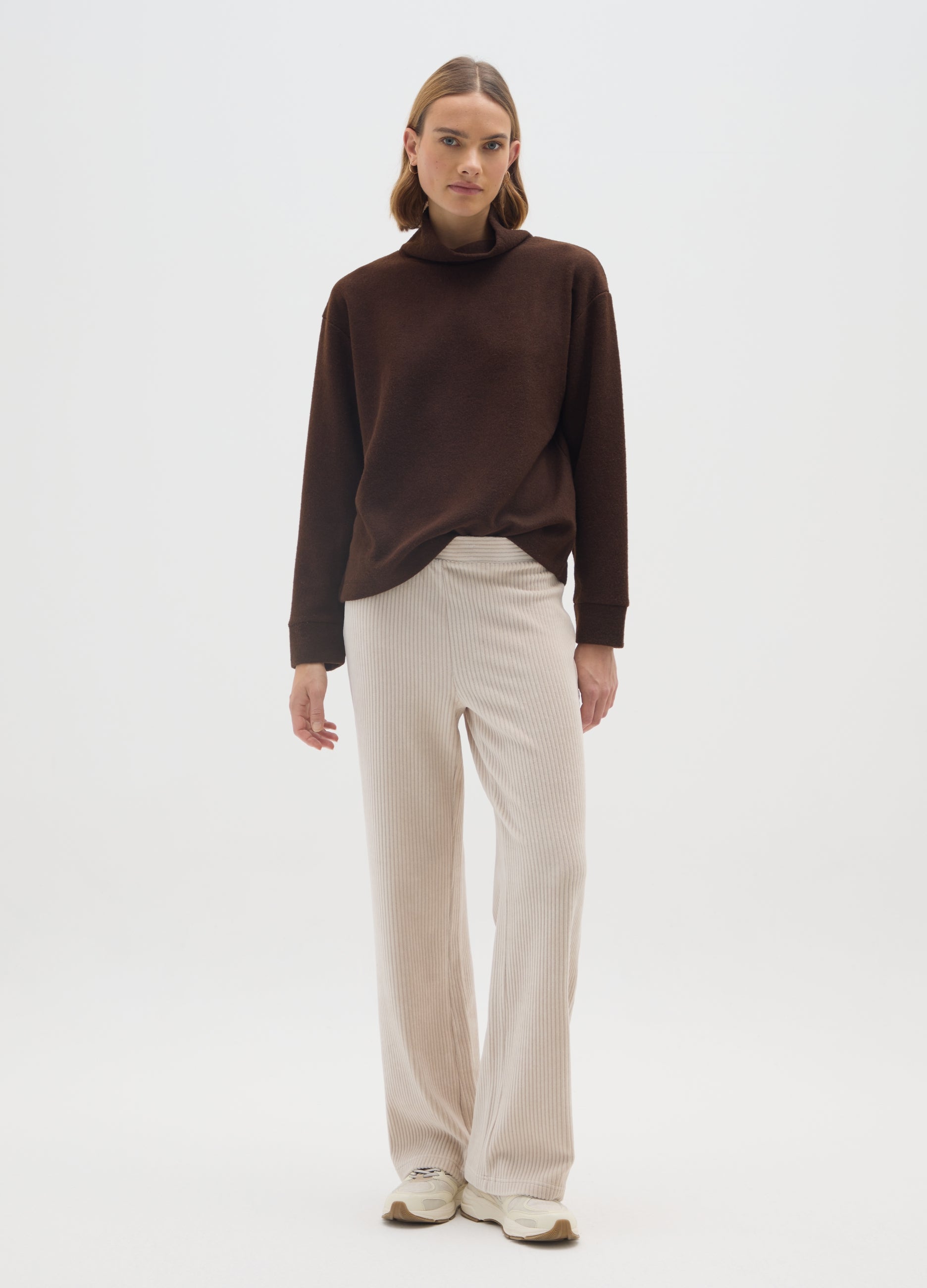 The Beige Wide Leg Stretch Cotton Trousers From The Ovs Line With An Elastic Waist Are Ideal For Autumn And Winter, Allowing Easy Pairing With Any Outfit For A Versatile And Refined Look. Choose These Trousers For A Perfect Blend Of Practicality And Sophistication.