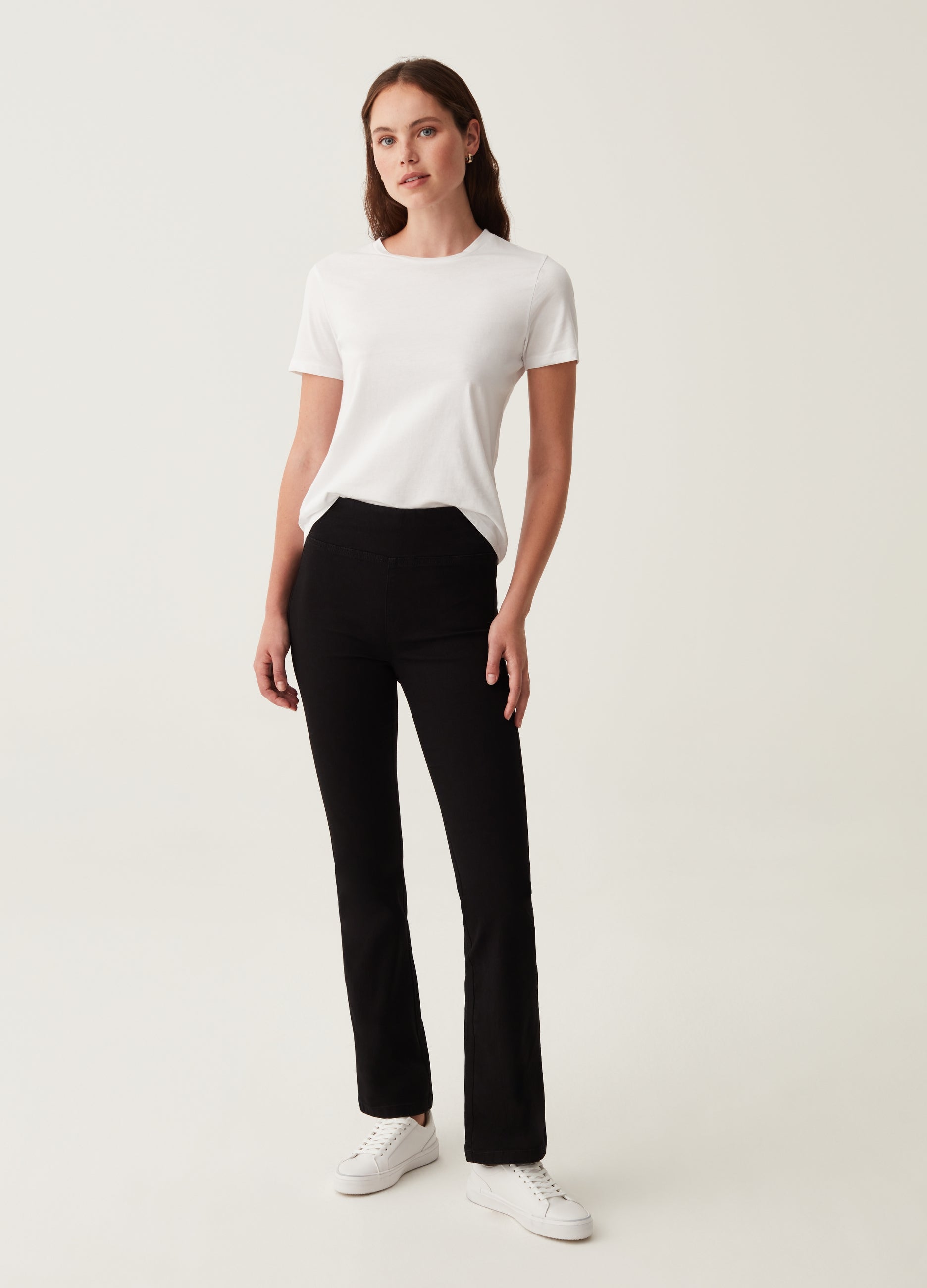 Flare-fit jeggings in stretch cotton blend. High elastic waist band.