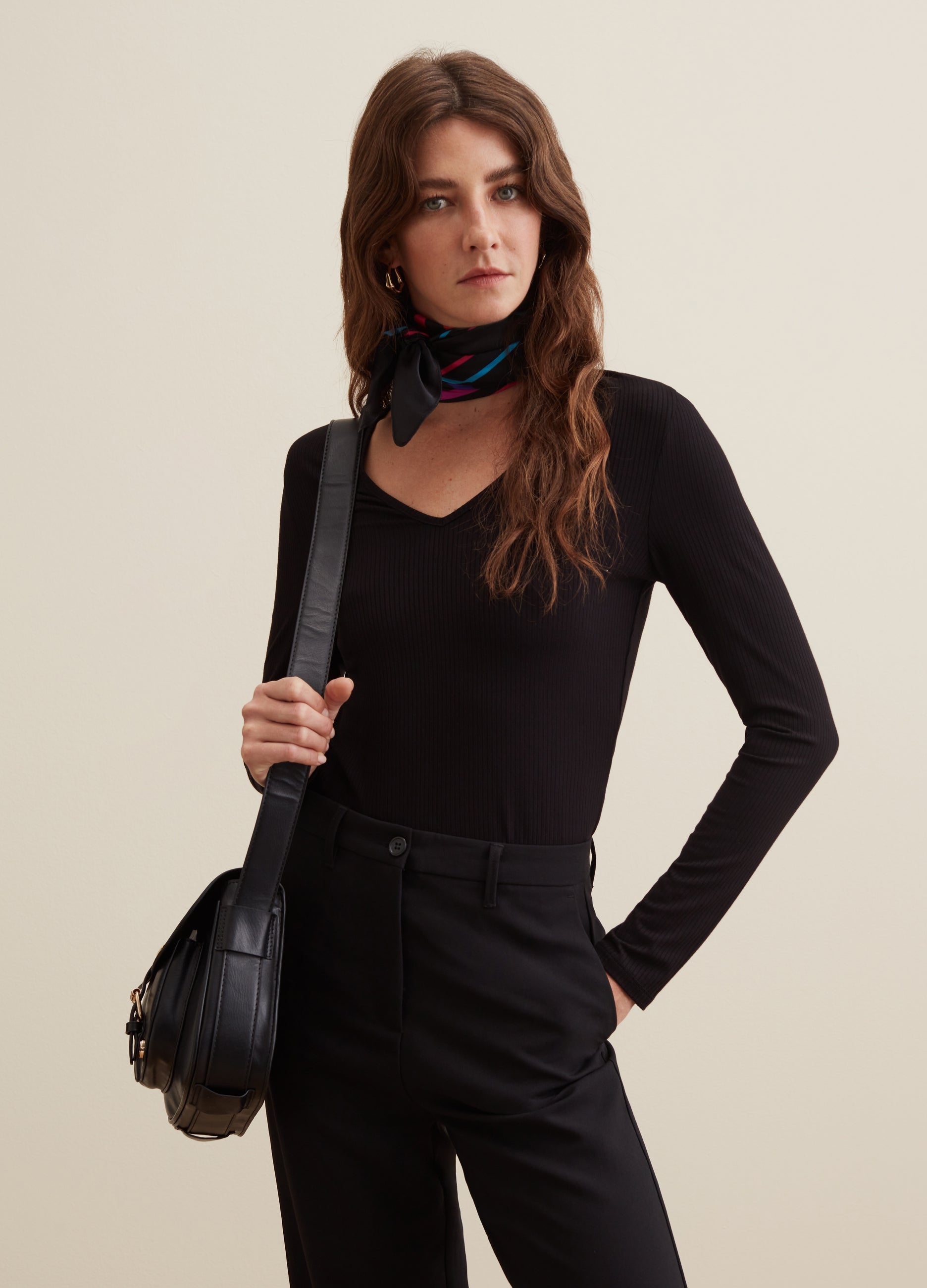 PIOMBO stretch viscose T-shirt with flat ribbing. V neck. Long sleeves.