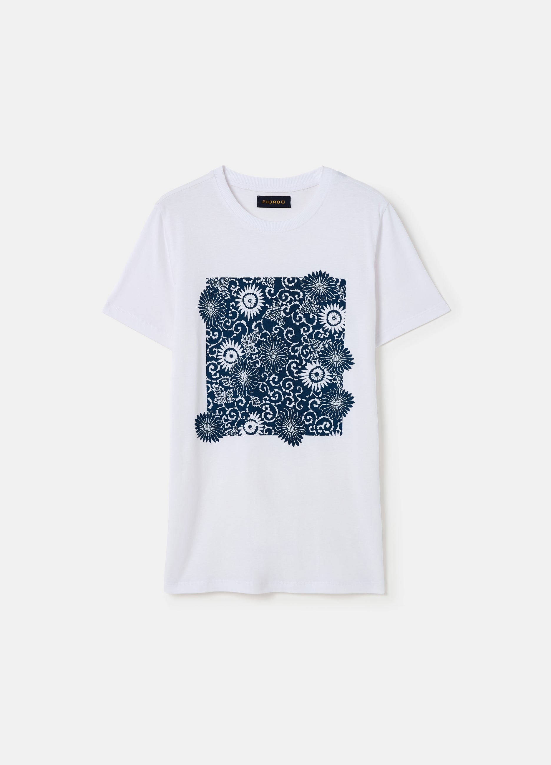 PIOMBO 100% organic cotton T-shirt. Round ribbed neck. Floral print on the front.