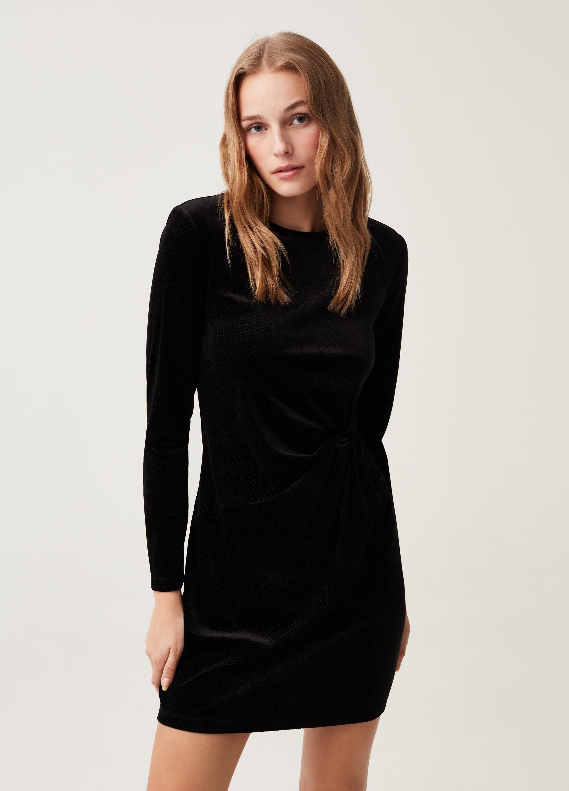 Ovs Womens Short Velvet Dress With Tie And Draping