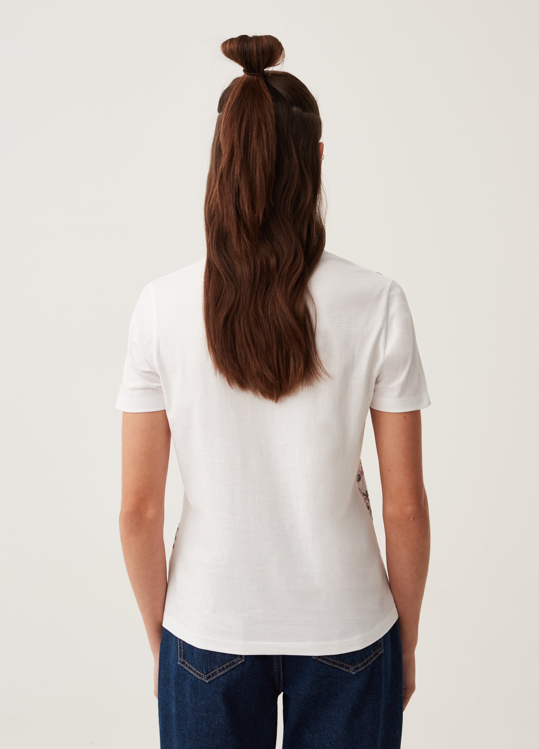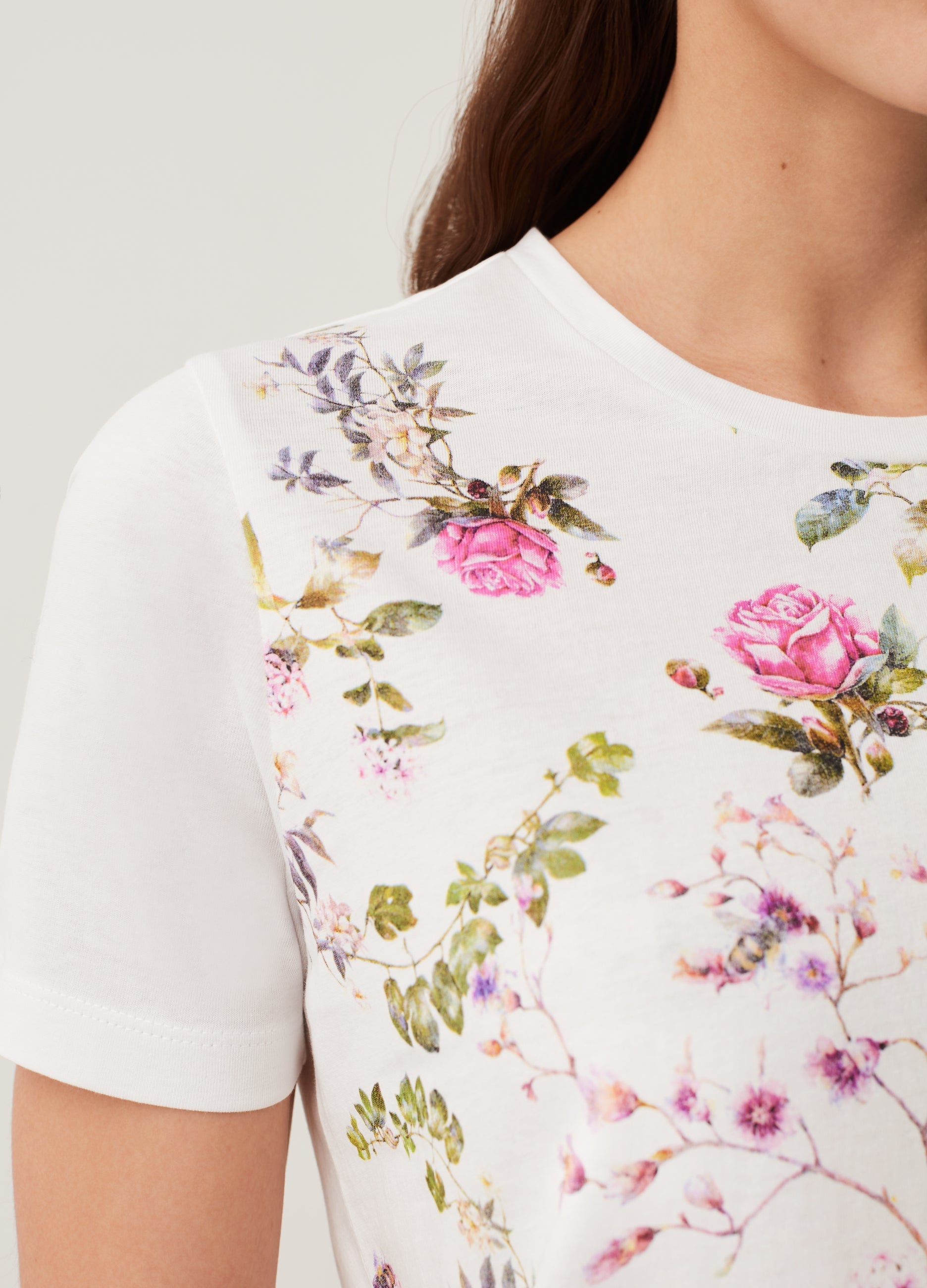 Round-neck T-shirt in 100% cotton. Floral print on the front.