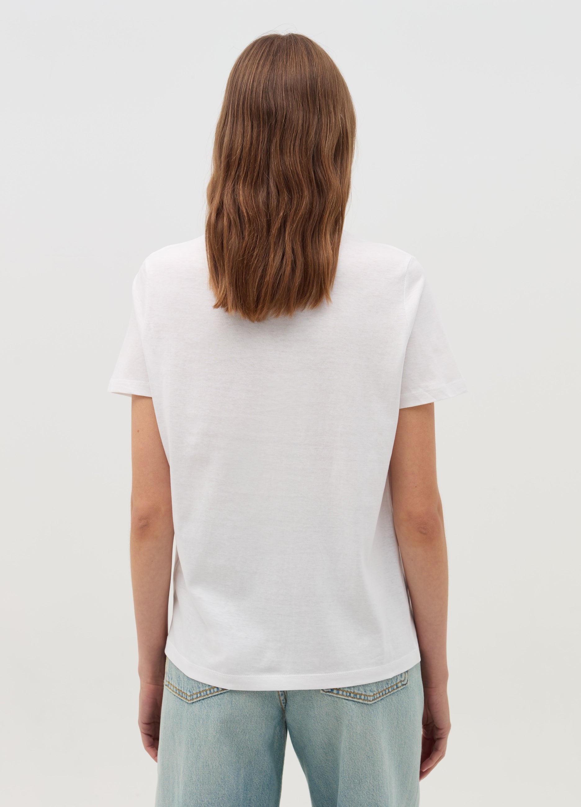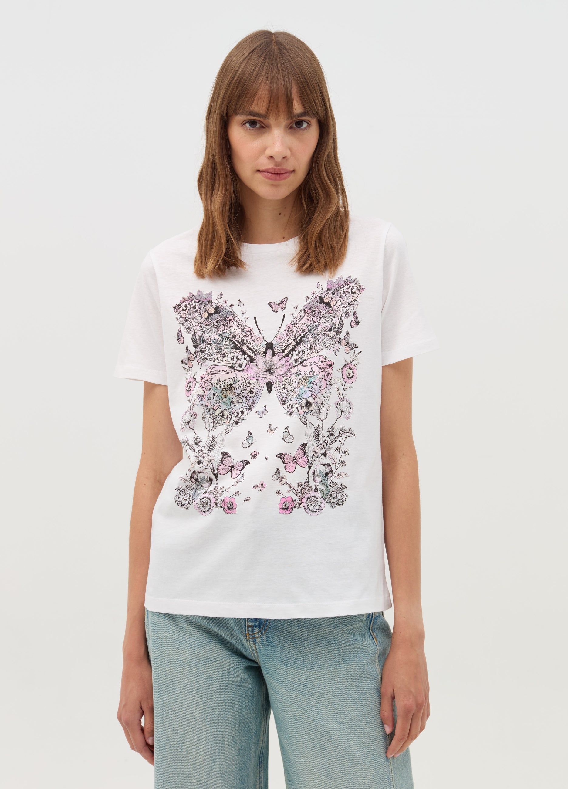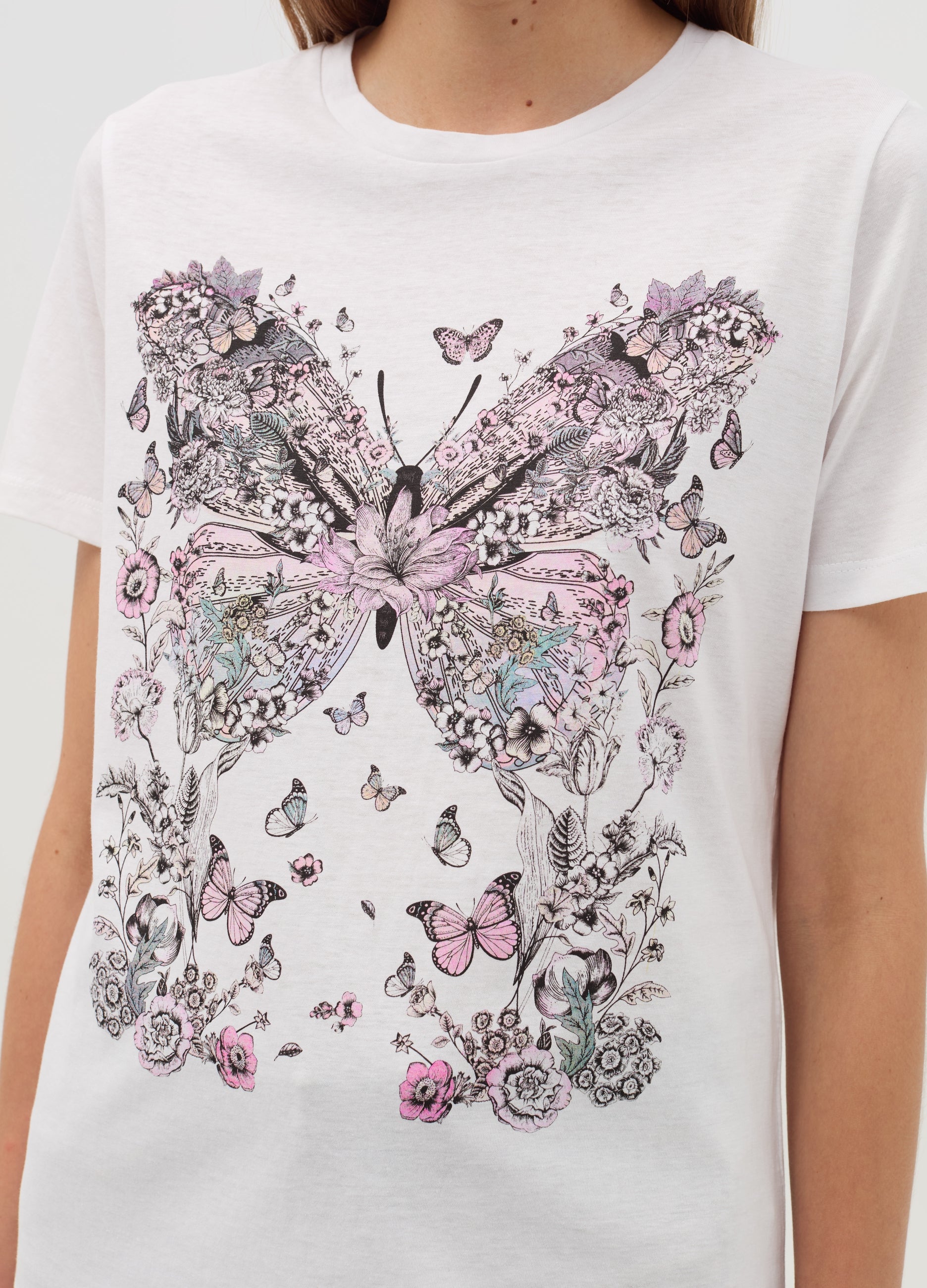 100% cotton T-shirt. Round neck. Butterflies with flowers print on the front.