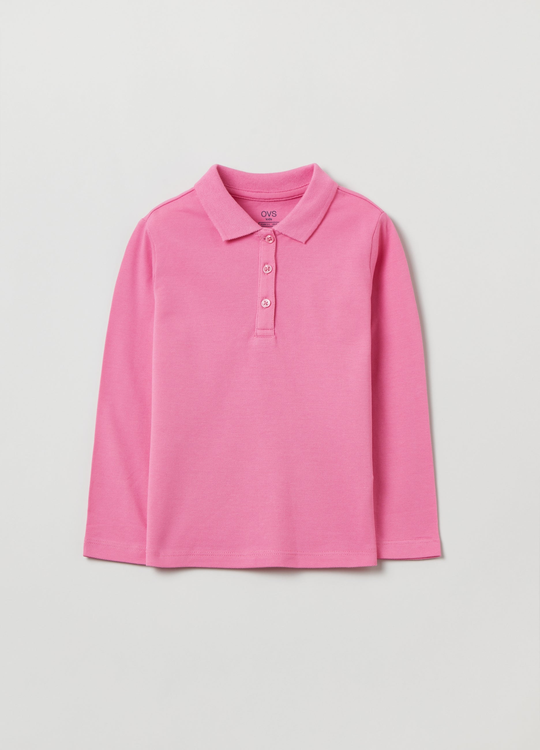 Long-sleeved polo shirt in 100% cotton piquet. Matching button fastening.