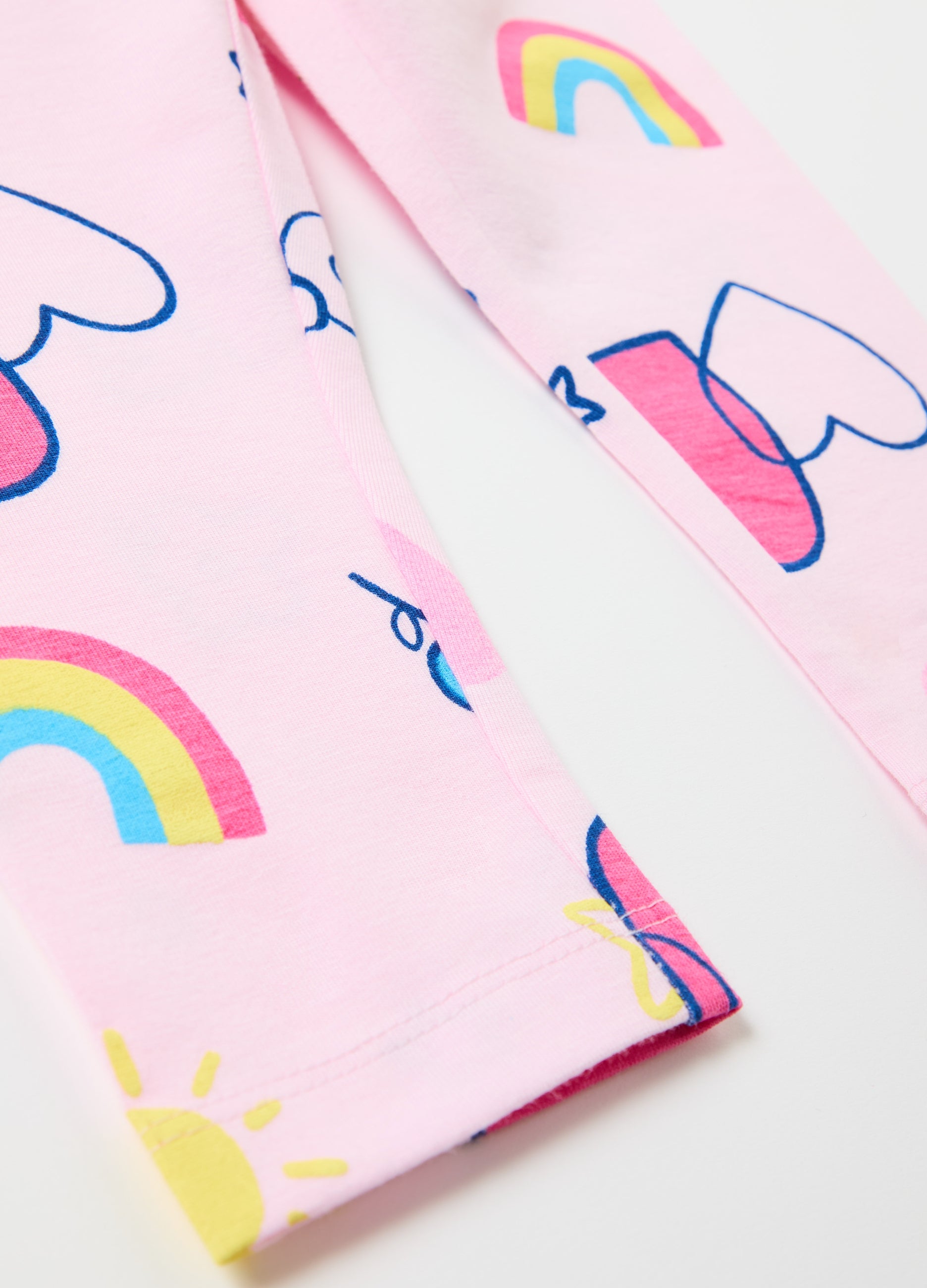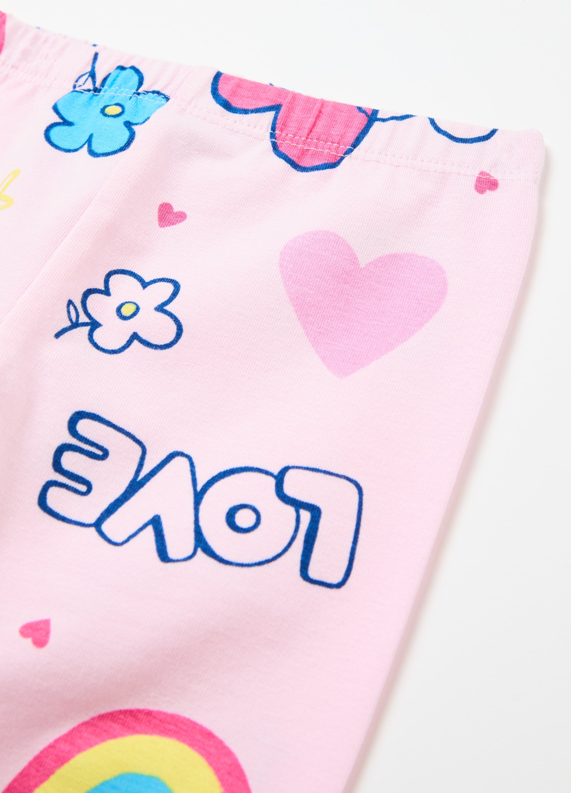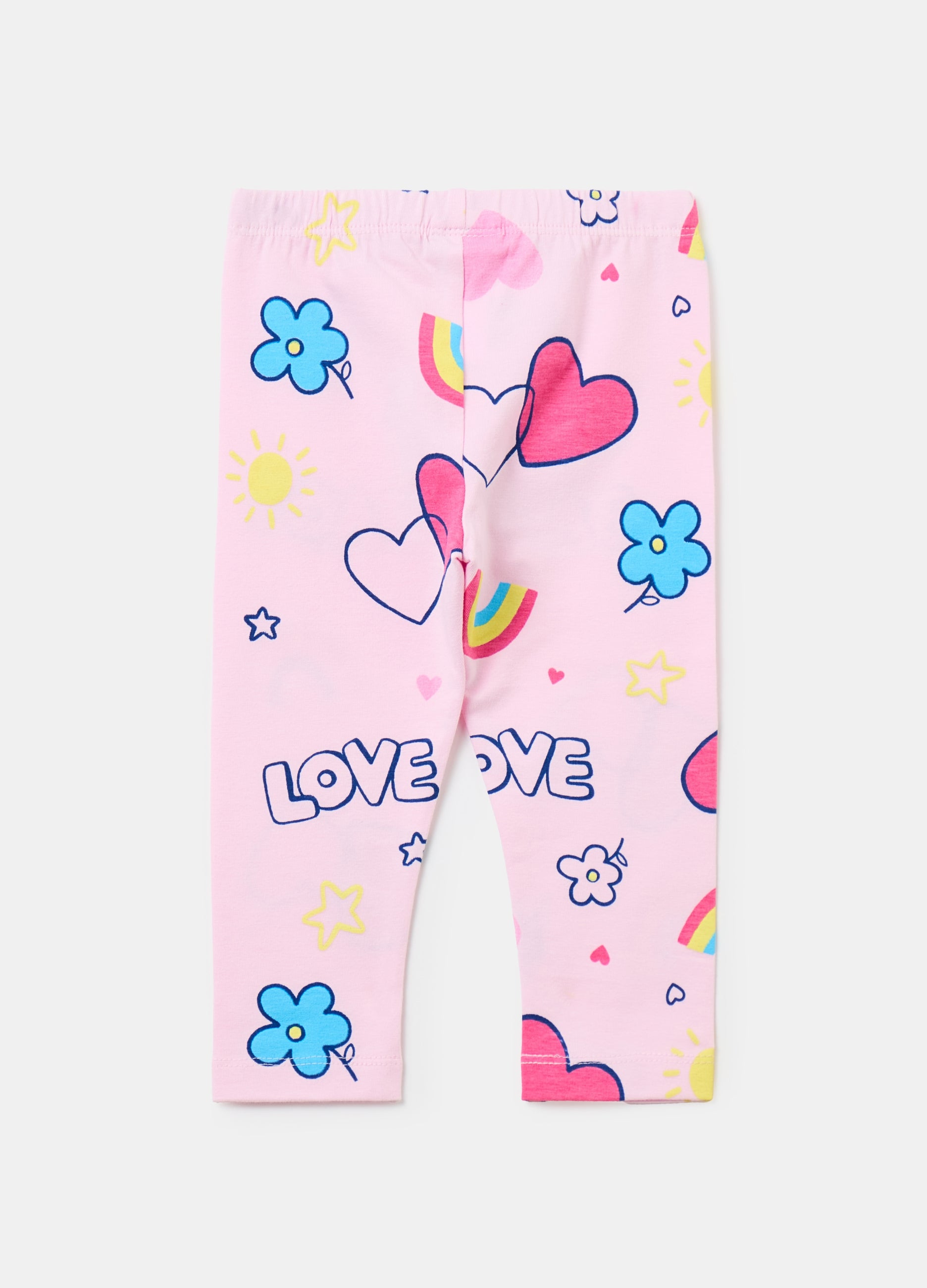 Stretch cotton leggings. Elasticated waist. All-over flowers, lettering and hearts print.