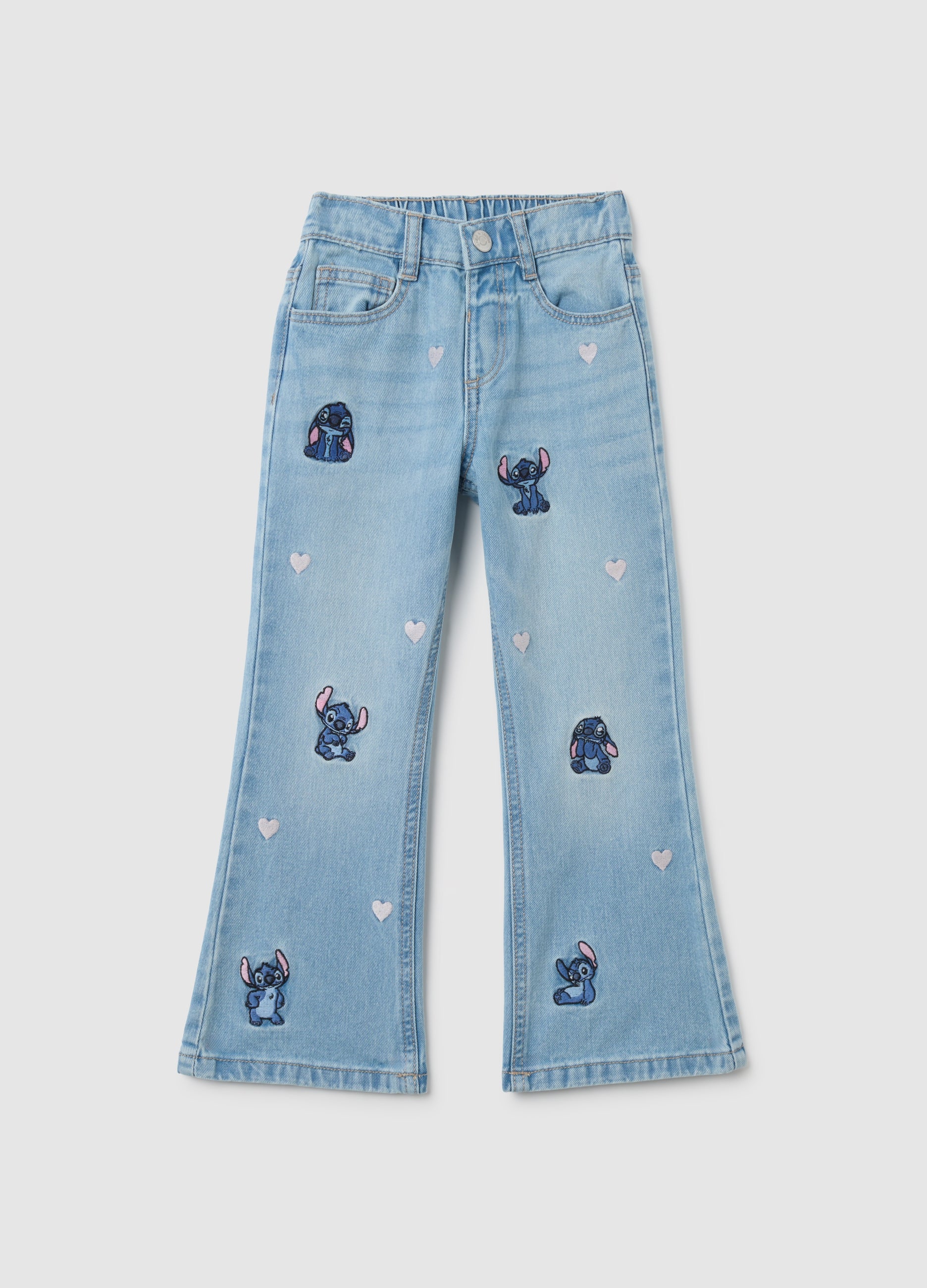 The Wide Blue Jeans From The Ovs Kids Line Are Designed For Girls Aged 3 To 10 Years. Made From Pure Cotton, They Feature A Relaxed Design Enriched With Stitch And Heart Embroidery, Perfect For A Playful Look. The High-Waisted Model Includes An Elastic Waistband To Ensure Maximum Comfort Throughout The Day. With A Regular Fit, These Jeans Are Ideal For Every Recreation Moment, Offering A Unique And Original Garment.