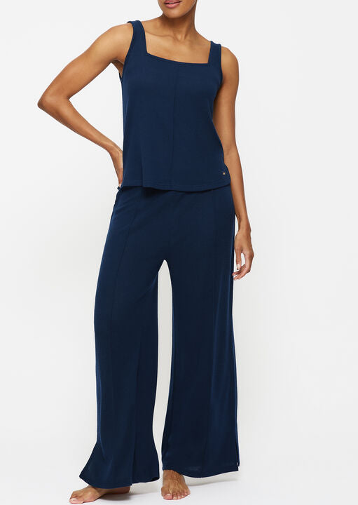 The navy Marie cami top by KBX is both stylish and comfortable. The soft touch, cotton brushed fabric has a relaxed fit with a square neckline and a pintuck seam down the centre front. A subtle, branded brushed gold tab adds a finishing touch.